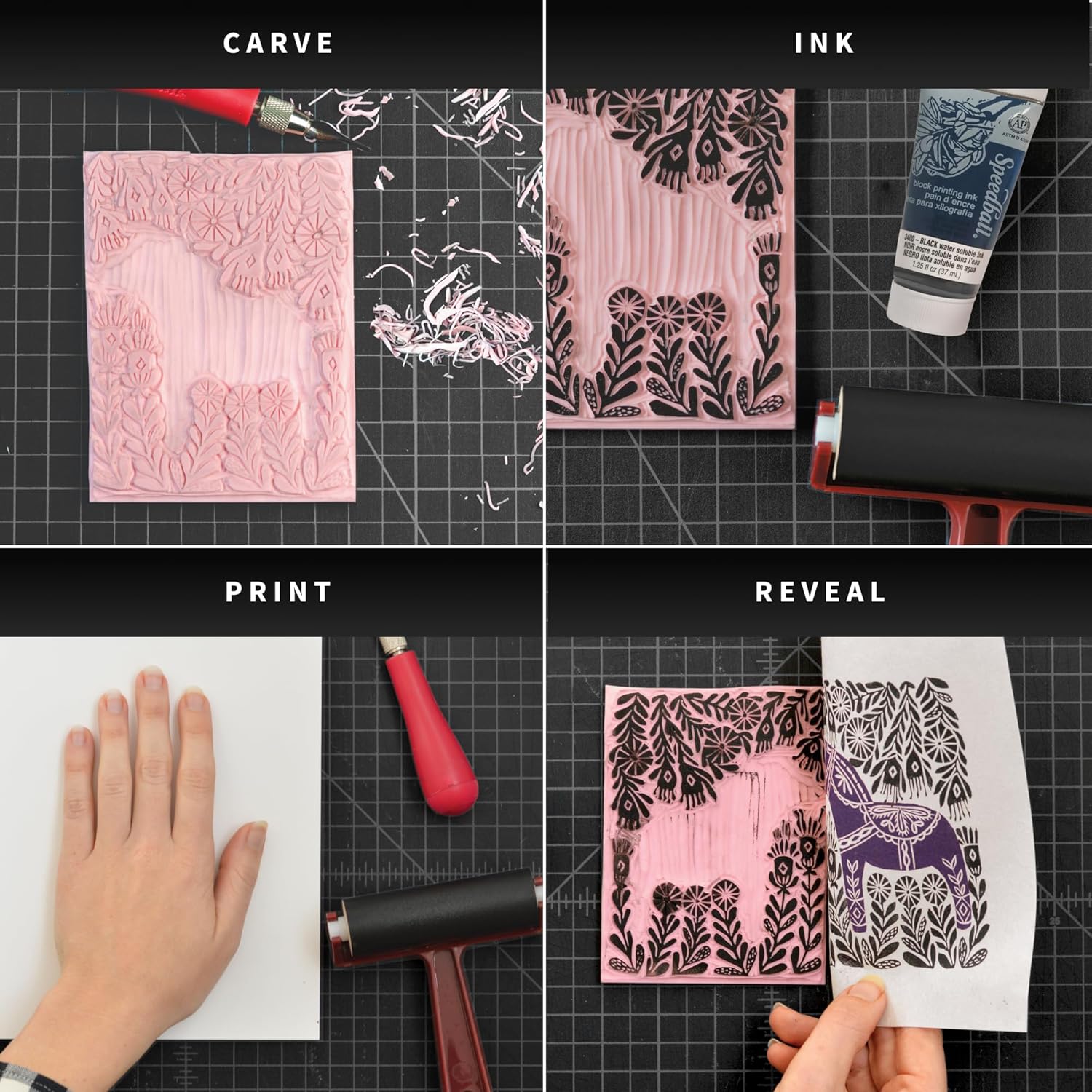 - ONE ROLLER, EVERY RELIEF SURFACE - The 40/42-durometer gum rubber flexes just enough to grip gel plates, linoleum and soft blocks with precision - making this your go-to brayer for block printing, gel printing, & mixed-media craft projects.
