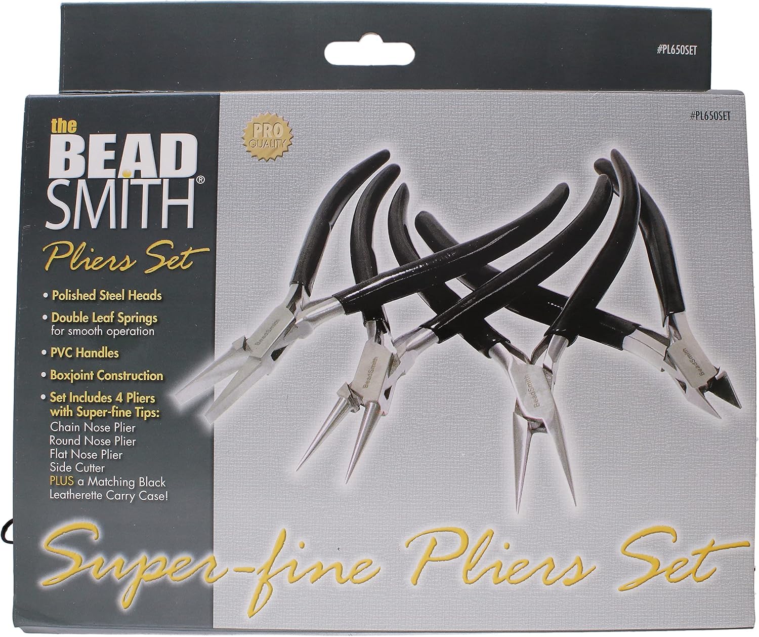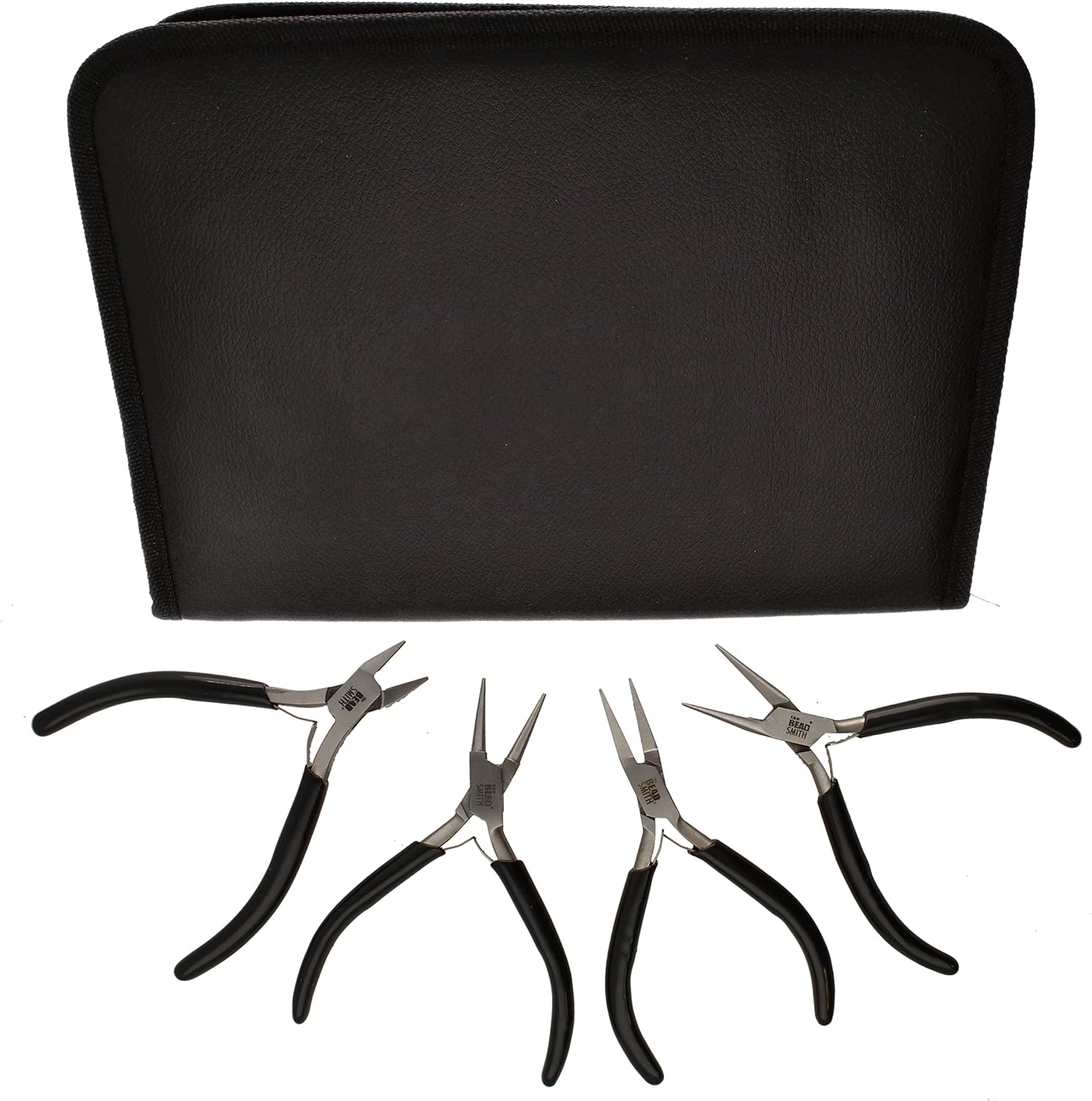 The Beadsmith Slim Line Pliers Set – Extra Fine Tips – 4.5 Inches, 4-Pieces: Round Nose, Chain Nose, Flat Nose & Semi-flush Side Cutter – Leatherette Carrying Case Included – Tools for Jewelry Making