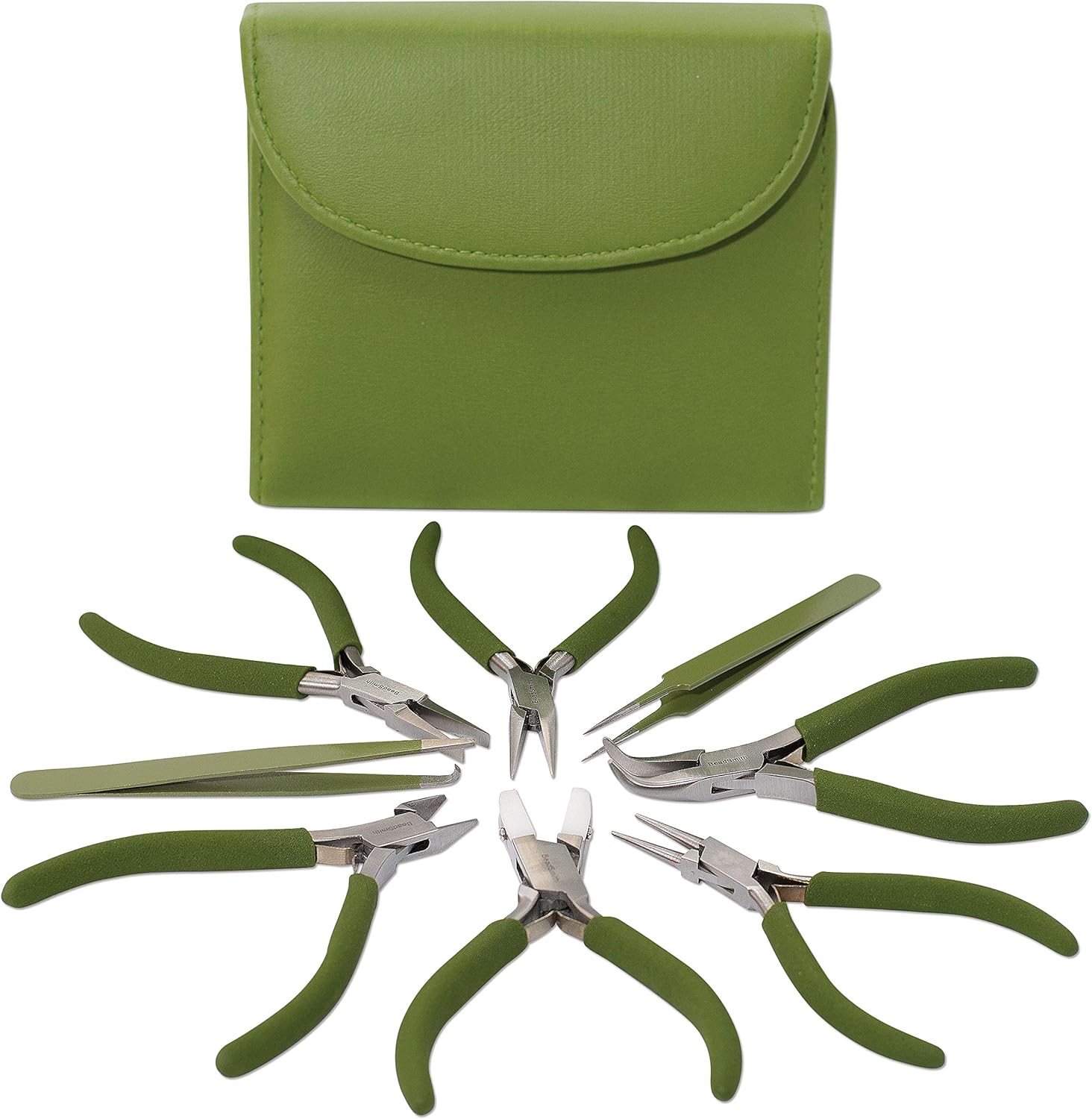 The Beadsmith Fashion Color Pliers – Set of 8 Slimline Color-Coordinated Tools – Matching Clutch in Olive – Jewelry Making Supply Kit to Create Necklaces, Bracelets, Earrings & More