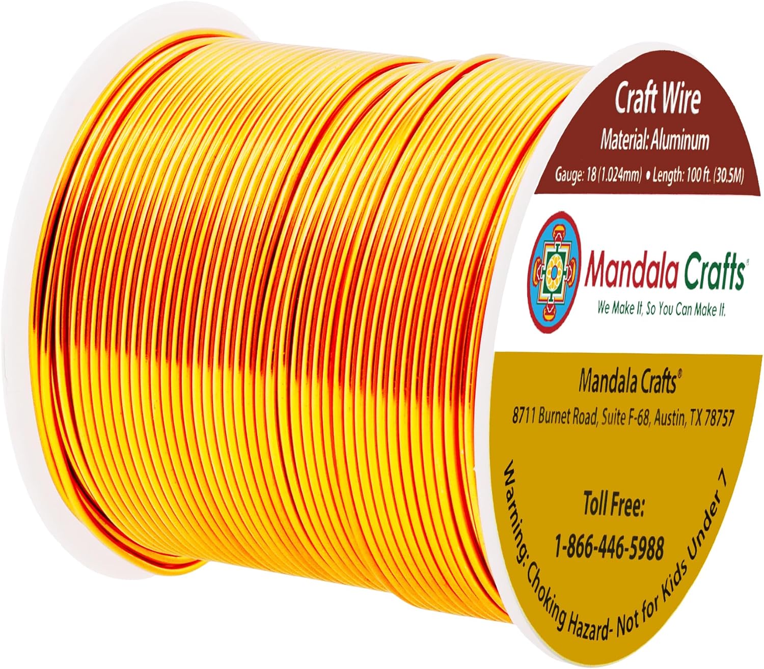 Mandala Crafts 18 Gauge Anodized Aluminum Craft Wire for Jewelry Making - 100 FT Colored Flexible Gold Tone Wire - Bendable for Bonsai Armature Crafting Sculpting