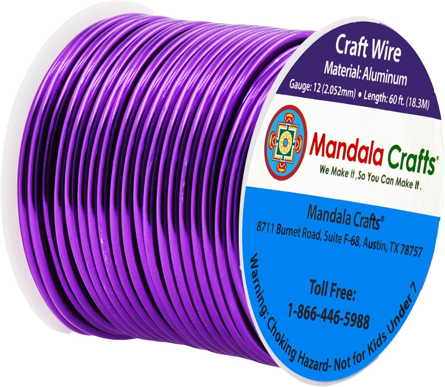 Mandala Crafts 12 Gauge Anodized Aluminum Craft Wire for Jewelry Making - 60 FT Colored Flexible Purple Wire - Bendable for Bonsai Armature Crafting Sculpting