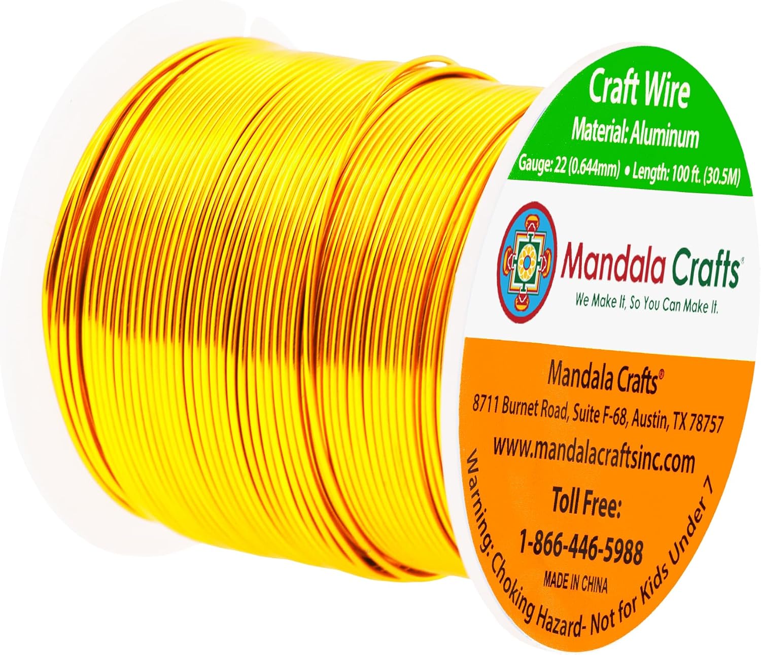 Mandala Crafts 22 Gauge Anodized Aluminum Craft Wire for Jewelry Making - 100 FT Colored Flexible Light Gold Tone Wire - Bendable for Bonsai Armature Crafting Sculpting