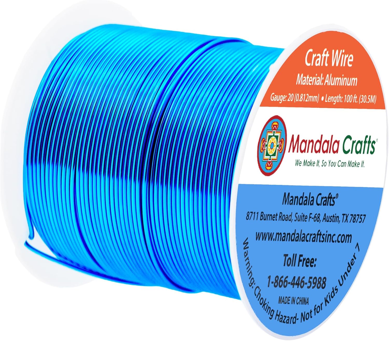 Mandala Crafts 20 Gauge Anodized Aluminum Craft Wire for Jewelry Making - 100 FT Colored Flexible Bondi Blue Wire - Bendable for Bonsai Armature Crafting Sculpting