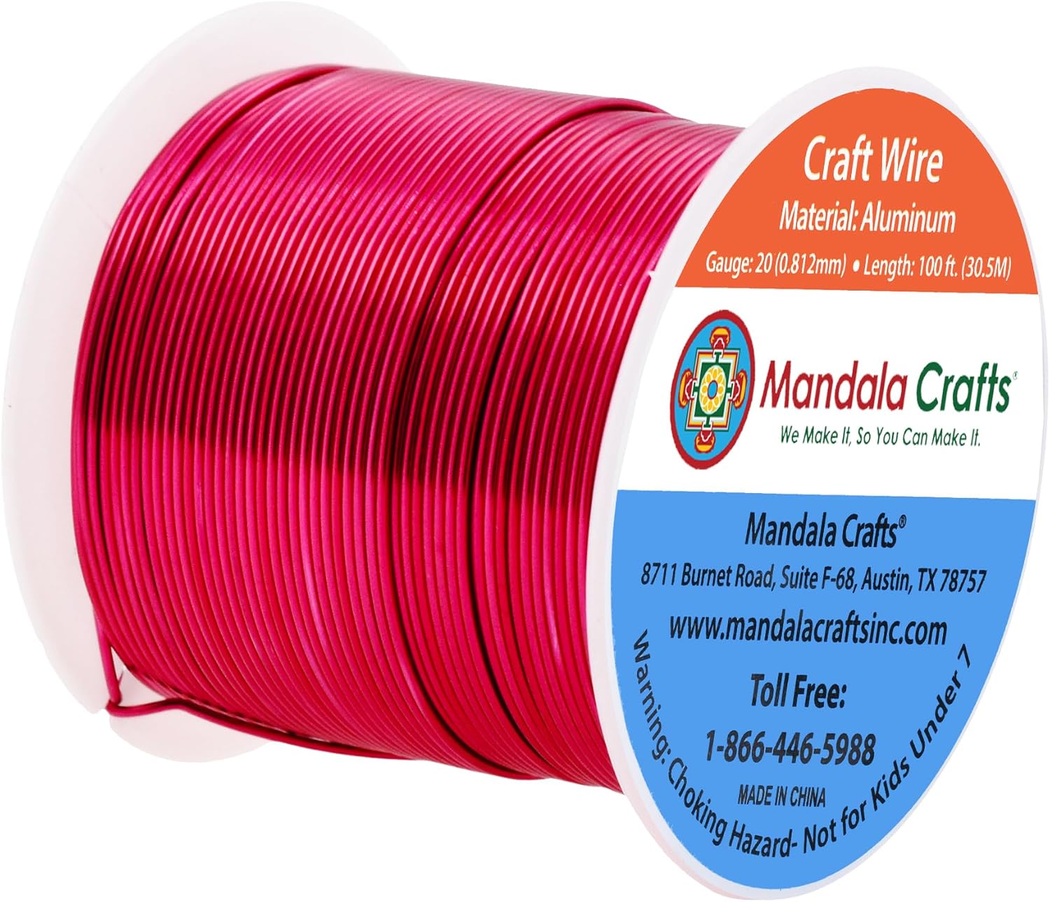 Mandala Crafts 20 Gauge Anodized Aluminum Craft Wire for Jewelry Making - 100 FT Colored Flexible Raspberry Wire - Bendable for Bonsai Armature Crafting Sculpting