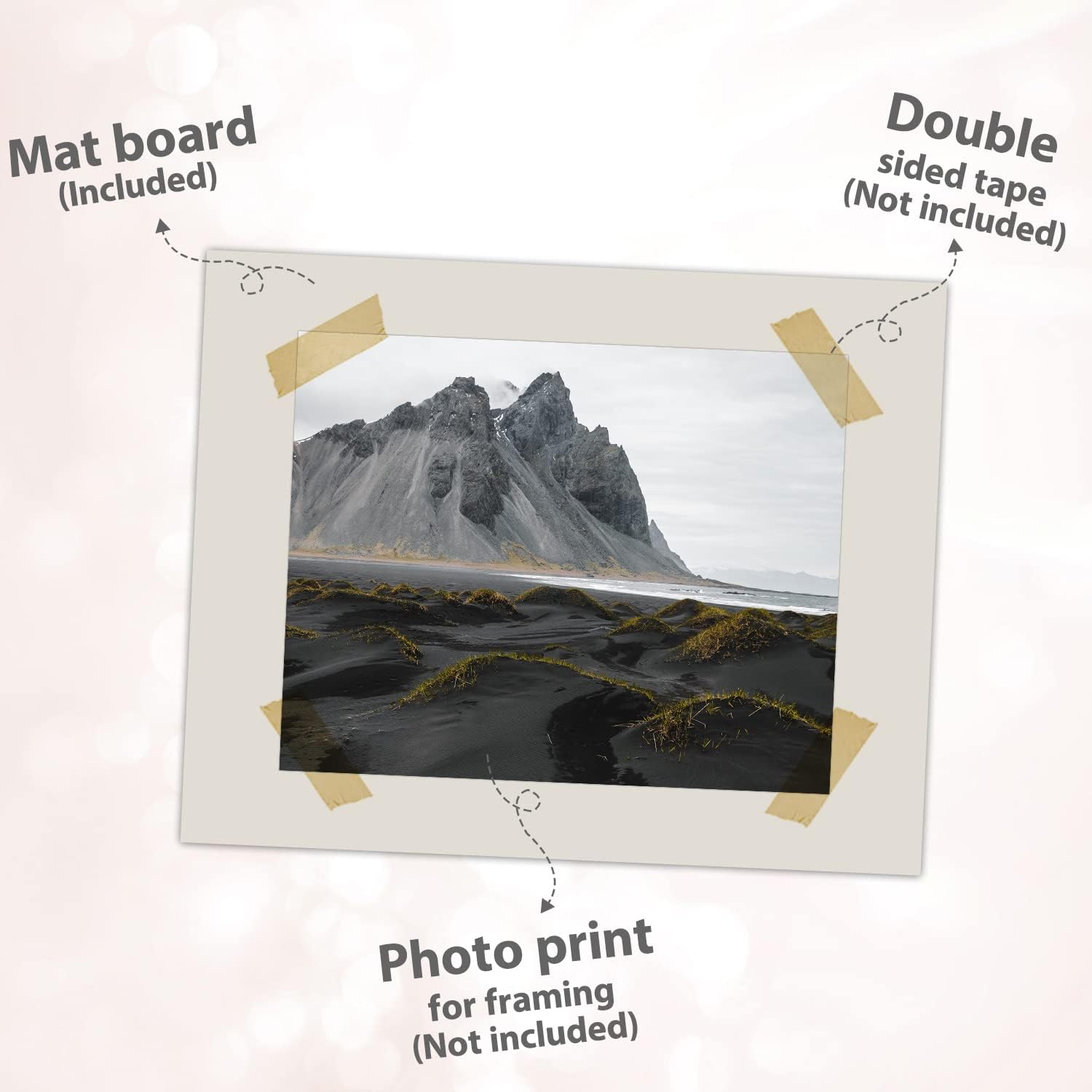 - Uncut Mat Board: Each matting board measures 16 x 20 inches; cut to your desired size and shape.