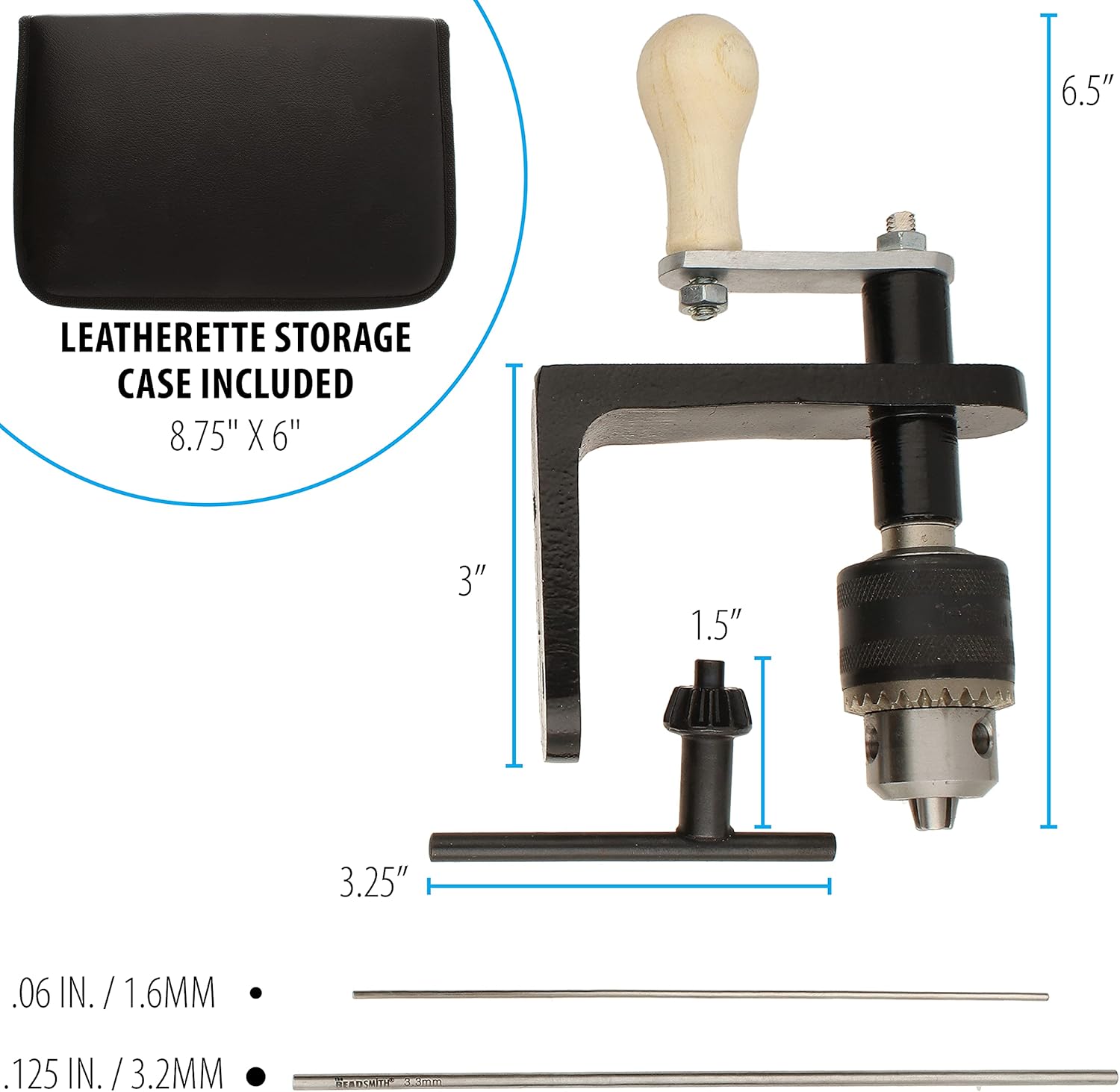 - COMPLETE KIT: Included in this set is 1 EZ Coiler Pro with a mountable base, 2 non-tapered round mandrels 1.6mm (.06in) and 3.2mm (.125in), 1 chuck key and instructions. Everything fits inside of the leatherette case that zips shut and features elastic and snap closures.