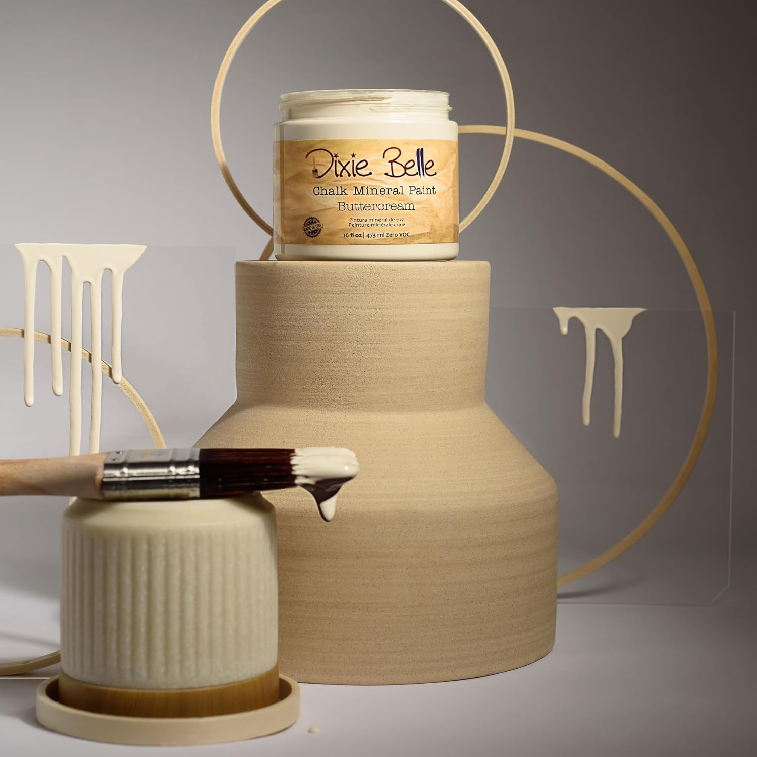 Dixie Belle Paint Company Chalk Finish Furniture Paint - Buttercream (8oz) - Matte Creamy White Chic Chalk Mineral DIY Furniture Paint