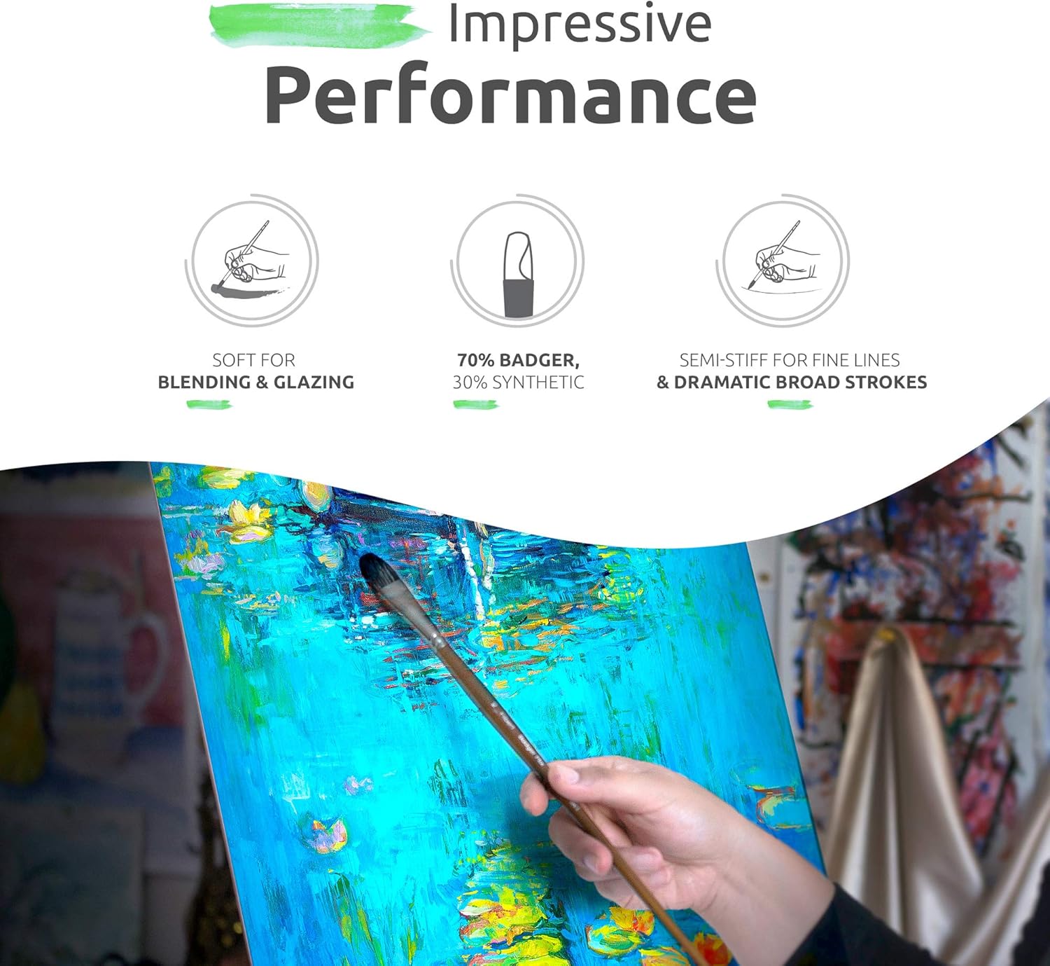 - FLAWLESS PERFORMANCE AT THE HIGHEST LEVEL: these filbert brushes made with badger mix (70% badger, 30% finest Japanese synthetic) combine the softness you need for blending and glazing with the semi-stiffness for thin lines and broad brush strokes. These oil paint brushes are easy to clean, too