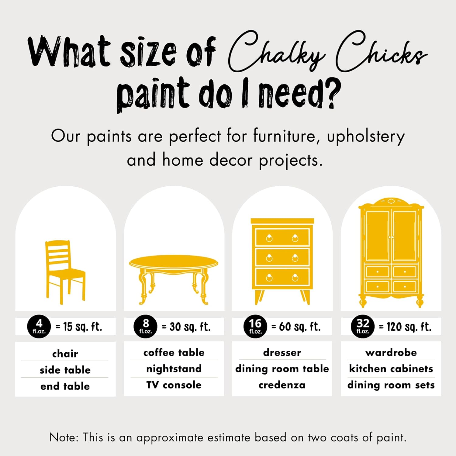 - TRANSFORM FURNITURE AND HOME DECOR WITH EASE: Chalky Chicks will save you time, money, and hassle. No sanding, priming, or multiple coats needed—just start painting your furniture with our cabinet paint no sanding or priming. Our paint is suitable for wood, metal, concrete, textiles, laminate, and more. Whether you prefer navy blue chalk paint, light blue paint, or green chalk paint, our chalk paint for furniture transforms any space with ease, making it ideal for DIY projects & craft painting.