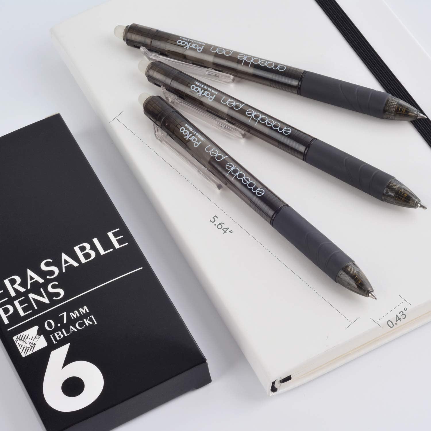 ParKoo Retractable Erasable Gel Pens Clicker, Fine Point, Make Mistake Disappear, Black Ink for Note Taking and Crossword Puzzles, 6-Pack