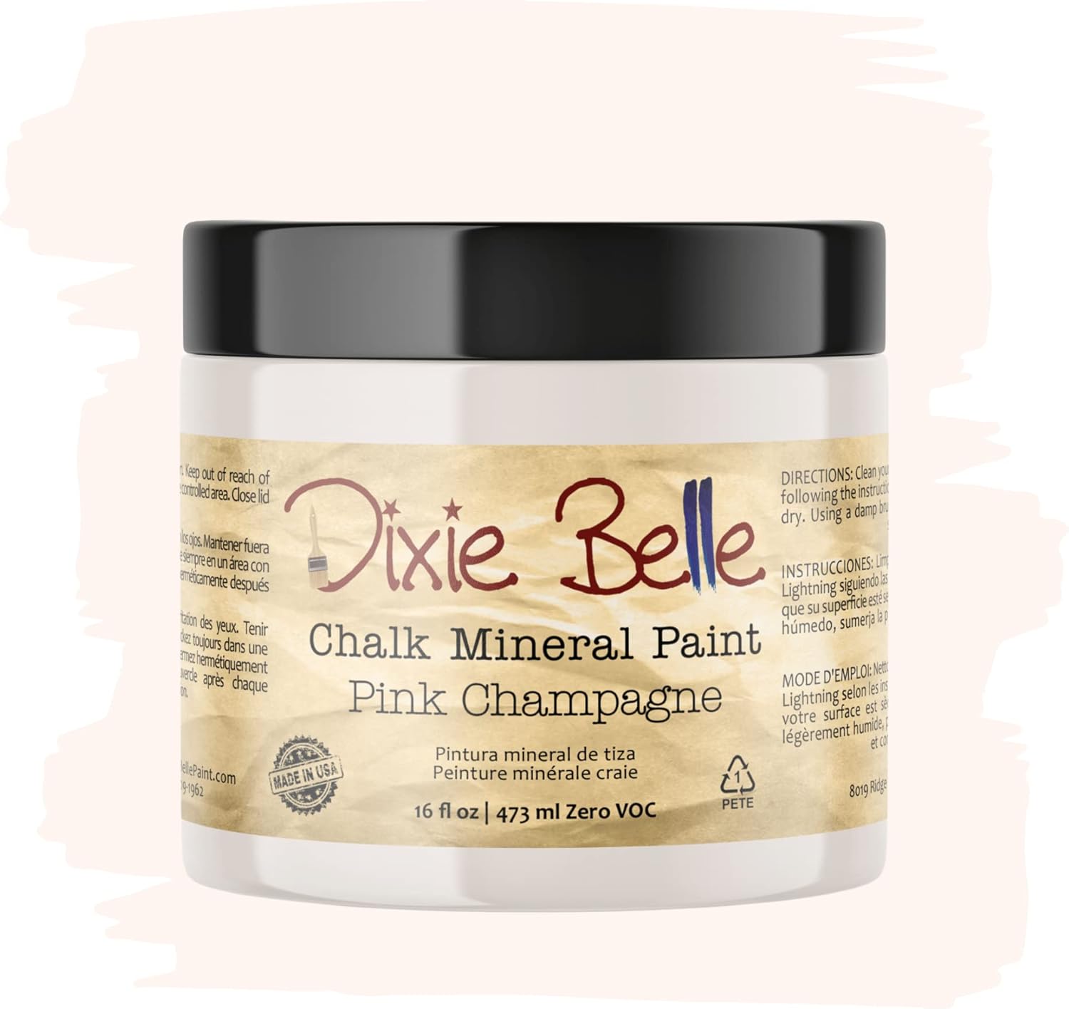Dixie Belle Paint Company Chalk Finish Furniture Paint - Pink Champagne (16 Fl Oz) - Matte Pale Pink Chic Chalk Mineral DIY Furniture Paint