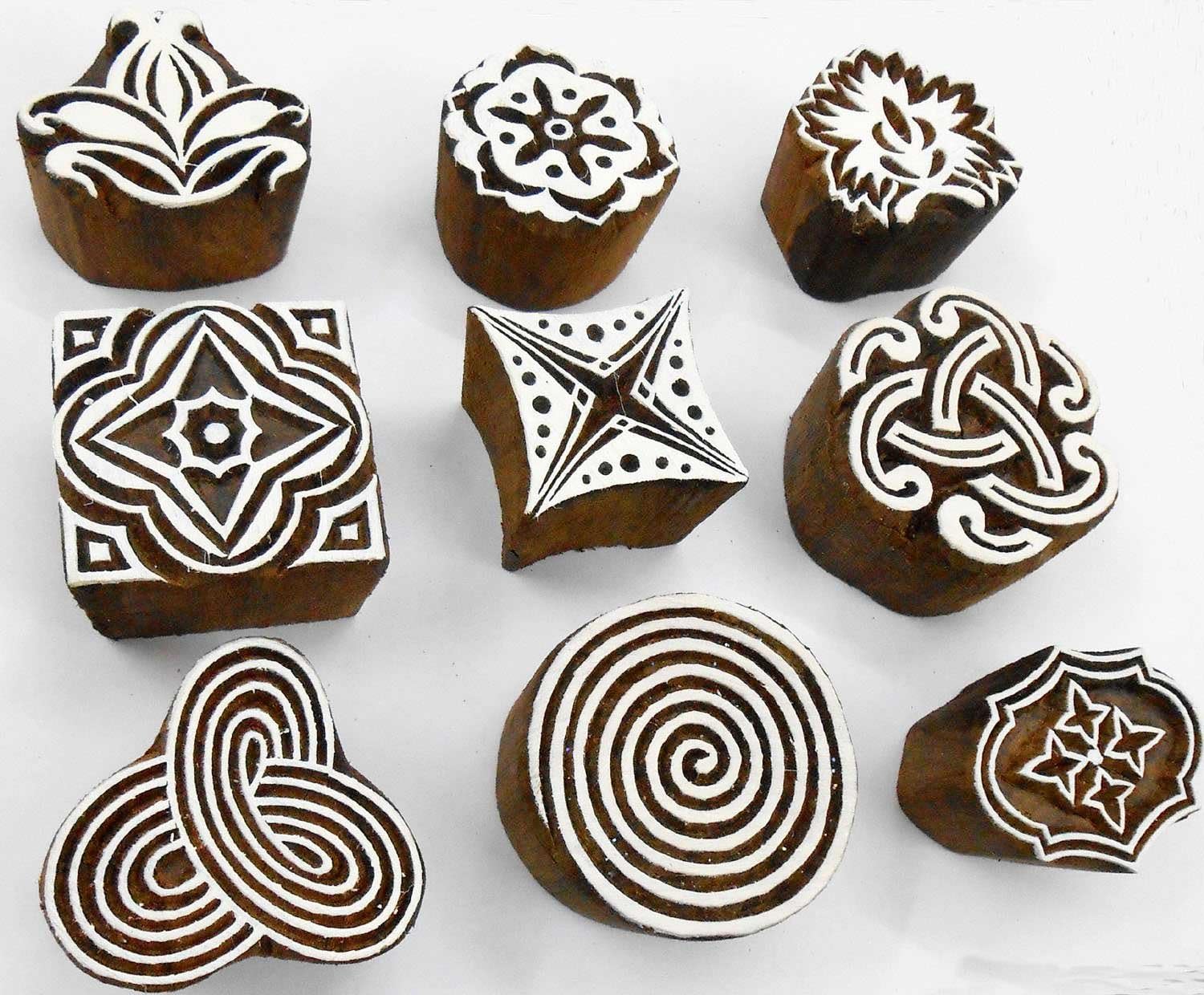 - Wholesale Lot of 9 Wooden Block Stamps for Textile Printing/ Scrapbooking/ Henna Tattoo