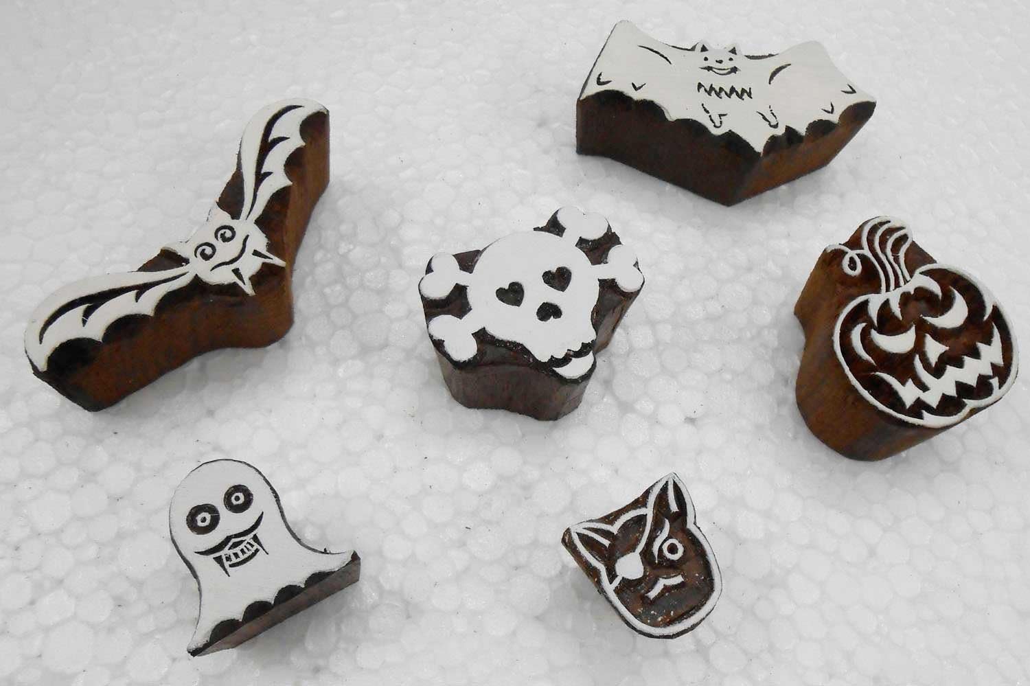 - Handcarved Wooden Block Printing Stamps (Set of 6) for Textile Designing/ Craft printing pattern for Saree/ Scrapbookng/ Tattoo/ Halloween Designs