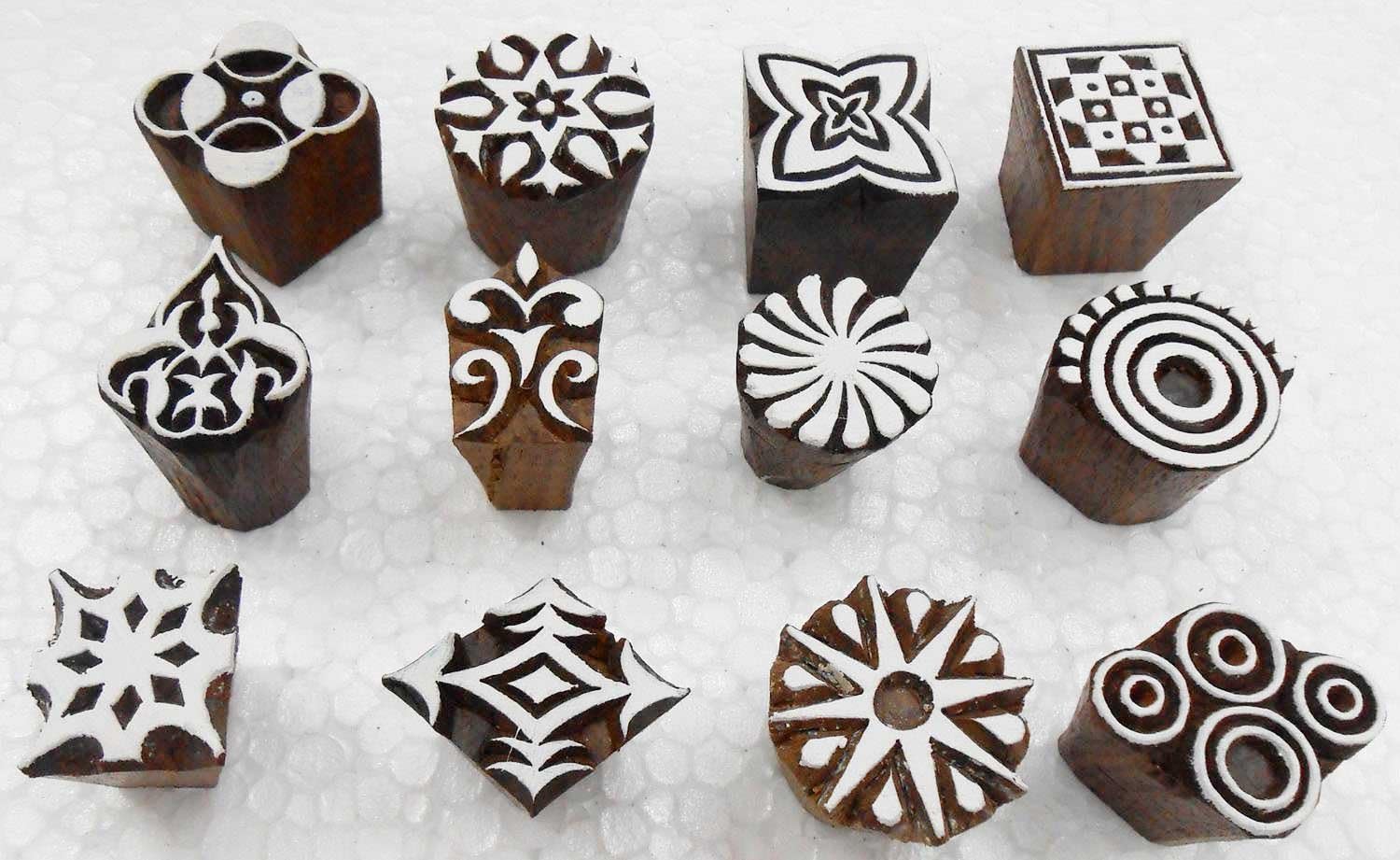 Wholesale Pack of 12 Wooden Block Printing Stamps for Textile Designing/Henna Tattoo/Crafts Printing Pattern for Saree/Home Decor