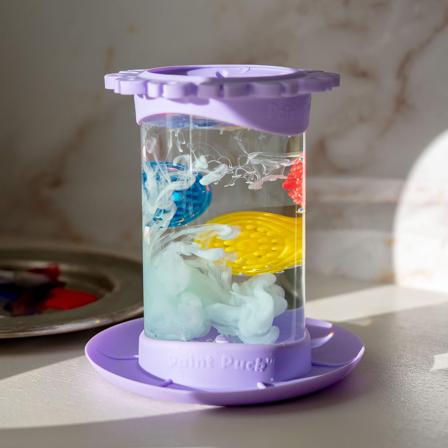 Paint Puck Ultimate Rinse Cup Paint Brush Cleaner (Purple, Jar) - Non-Spill Paint Water Cup & Brush Cleaner with Brush Holder, Squeegee Lips & Drip Tray for Acrylic, Watercolor & Art Supplies