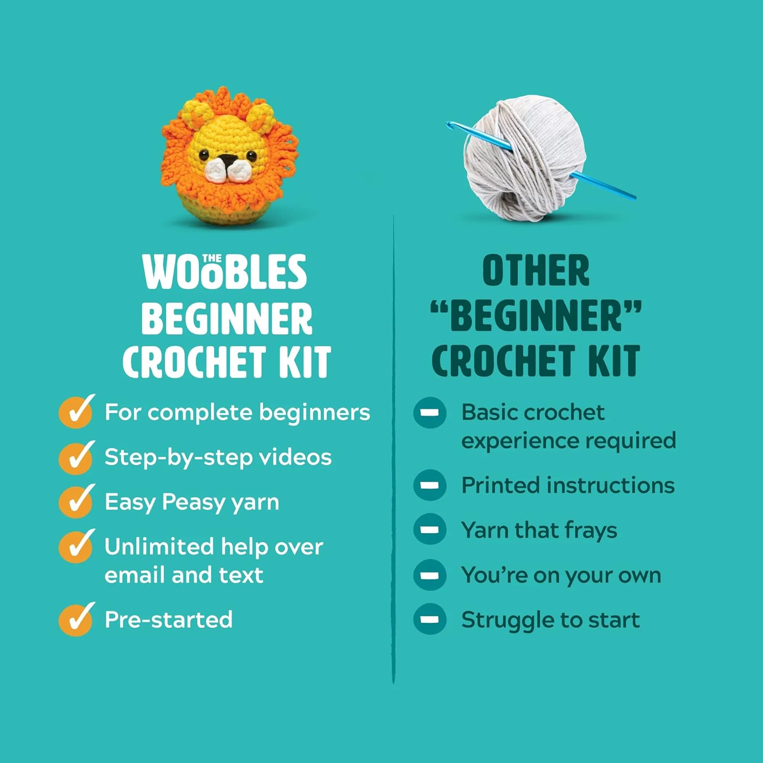 - 🧶 KNITTING KITS: The Woobles Easy Peasy Yarn is custom-made for beginners, only from The Woobles. It’s simple to crochet with and makes stitches easy to see from start to finish.