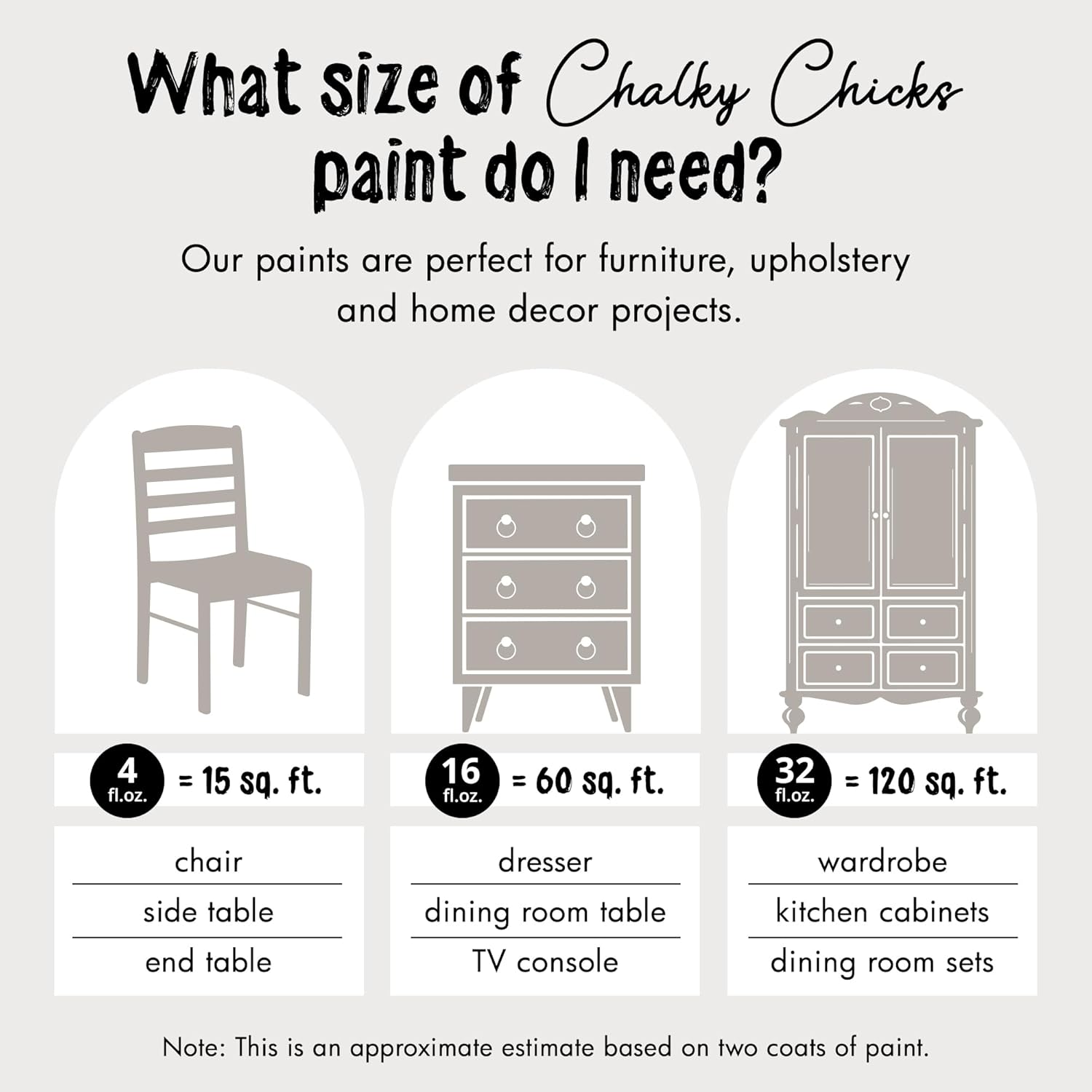 - TRANSFORM FURNITURE AND HOME DECOR WITH EASE: Chalky Chicks will save you time, money, and hassle. No sanding, priming, or multiple coats needed—just start painting your furniture with our cabinet paint no sanding or priming. Our paint is suitable for wood, metal, concrete, textiles, laminate, and more. Whether you prefer navy blue chalk paint, light blue paint, or green chalk paint, our chalk paint for furniture transforms any space with ease, making it ideal for DIY projects & craft painting.