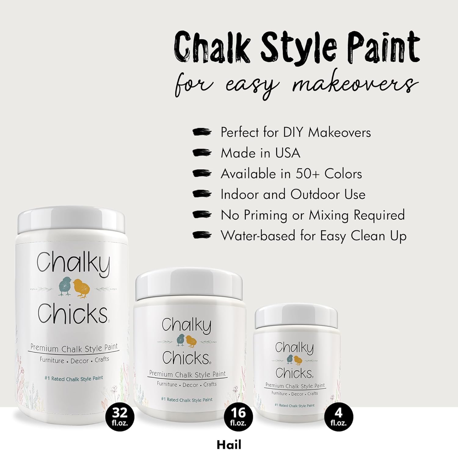 Chalky Chicks All-in-One Chalk Paint for Furniture or Cabinet - 32 Fl Oz - Matte Finish Hail White for Metal, Wood Furniture Paint - No Sanding All-in-One for Home Decor & Crafts, USA Made