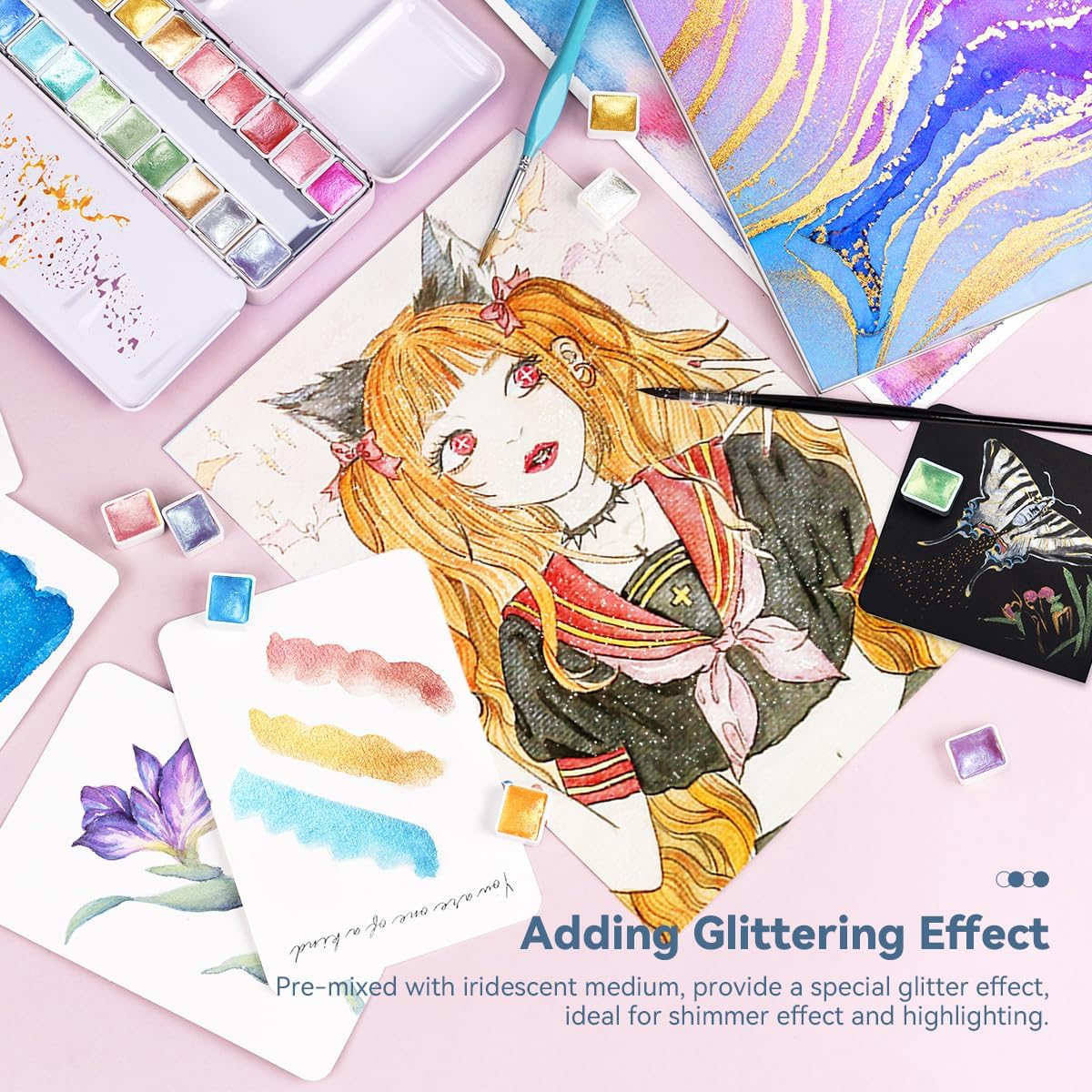 - Special Feature : glitter watercolor paint set, metallic