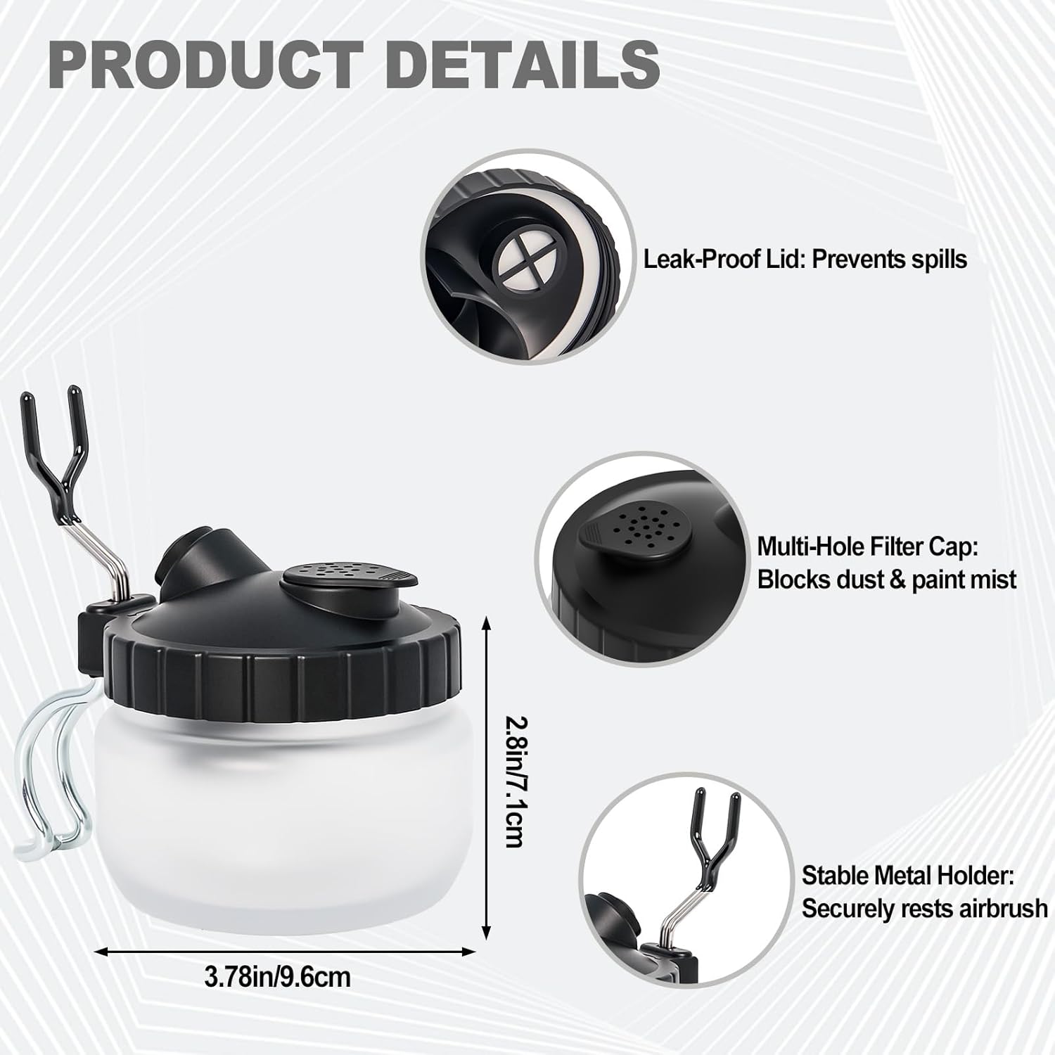 - Multi-purpose cleaning jar,This clean pot also can be used as an airbrush holder,Eliminating over spray and mess in your work area,Heavy glass jar,Prevents the weight of an airbrush and hose from tipping over the pot