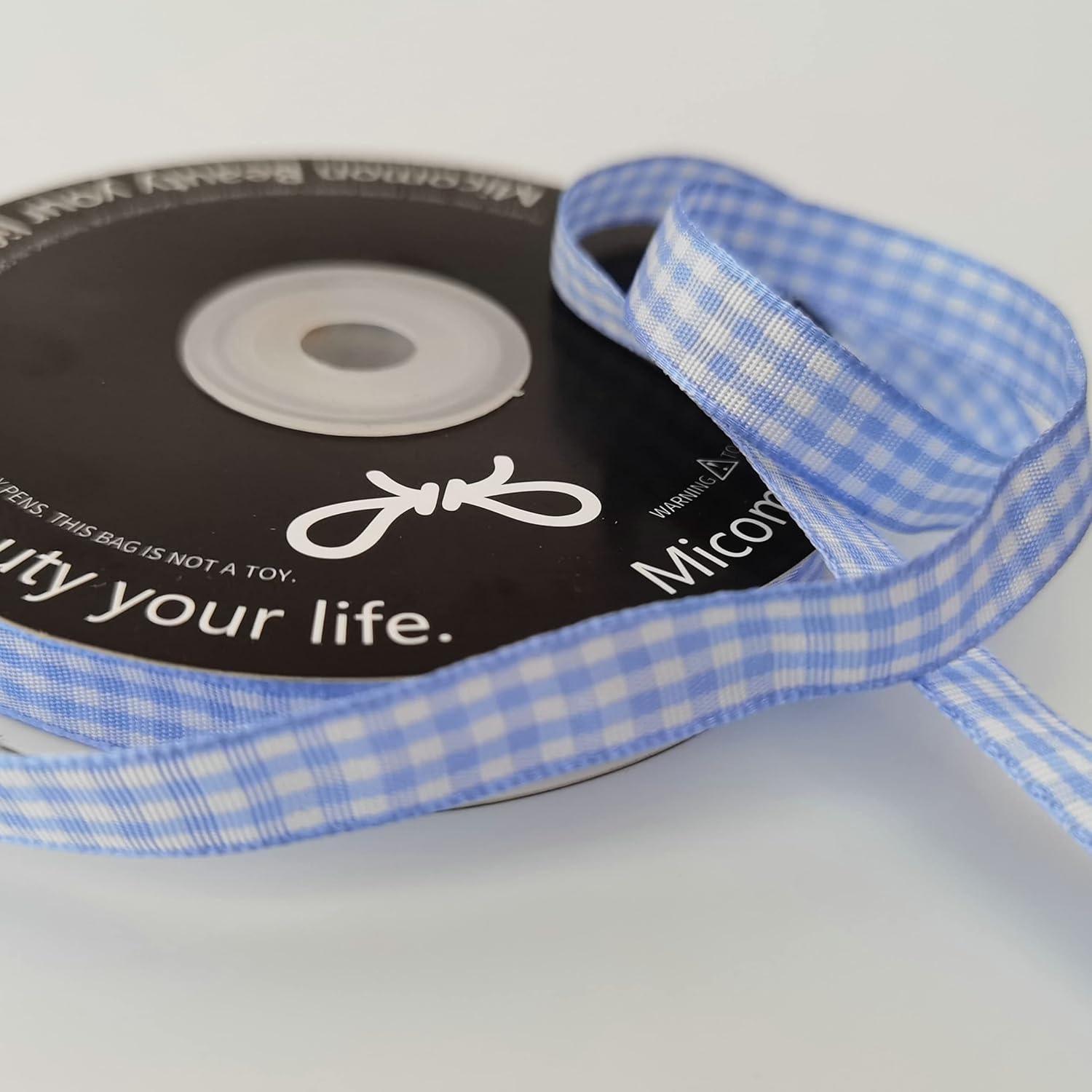 Light Blue Gingham Plaid Checked Ribbon 25 Yard Each Roll 100% Polyester (3/8", Lt.Blue)