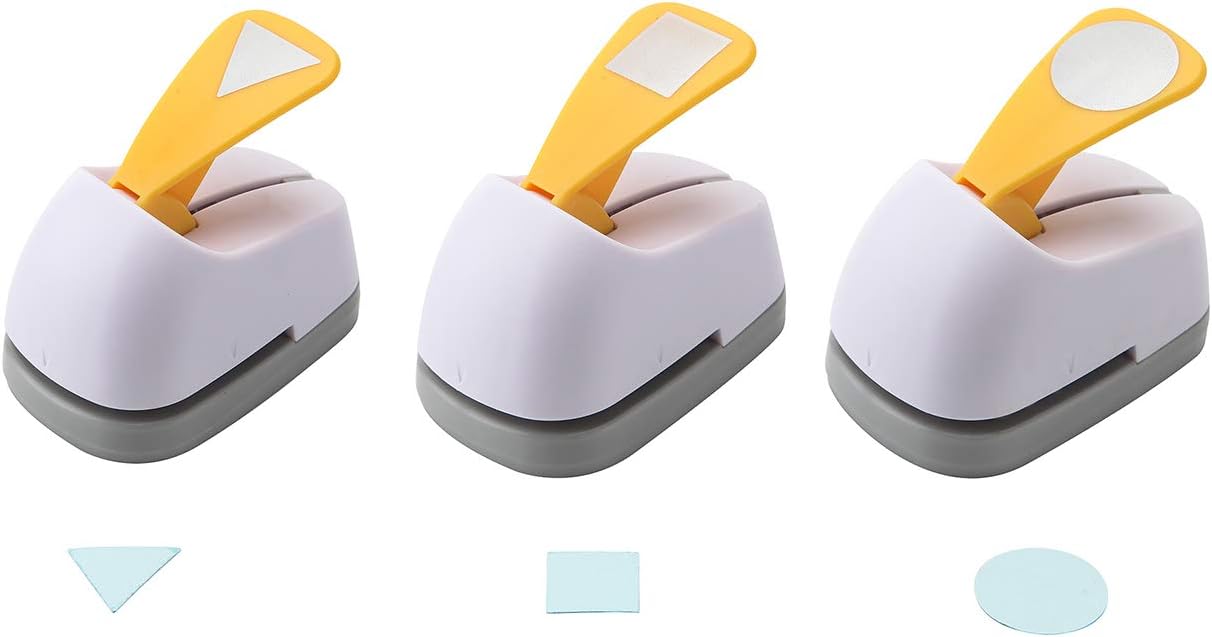 Craft Lever Punch DIY Handmade Craft Punch Paper Punch for Festival and Greeting Card Making Ten Shapes Choices (White 0.7X0.7inch square-1inch Circle-0.75inch Triangle)