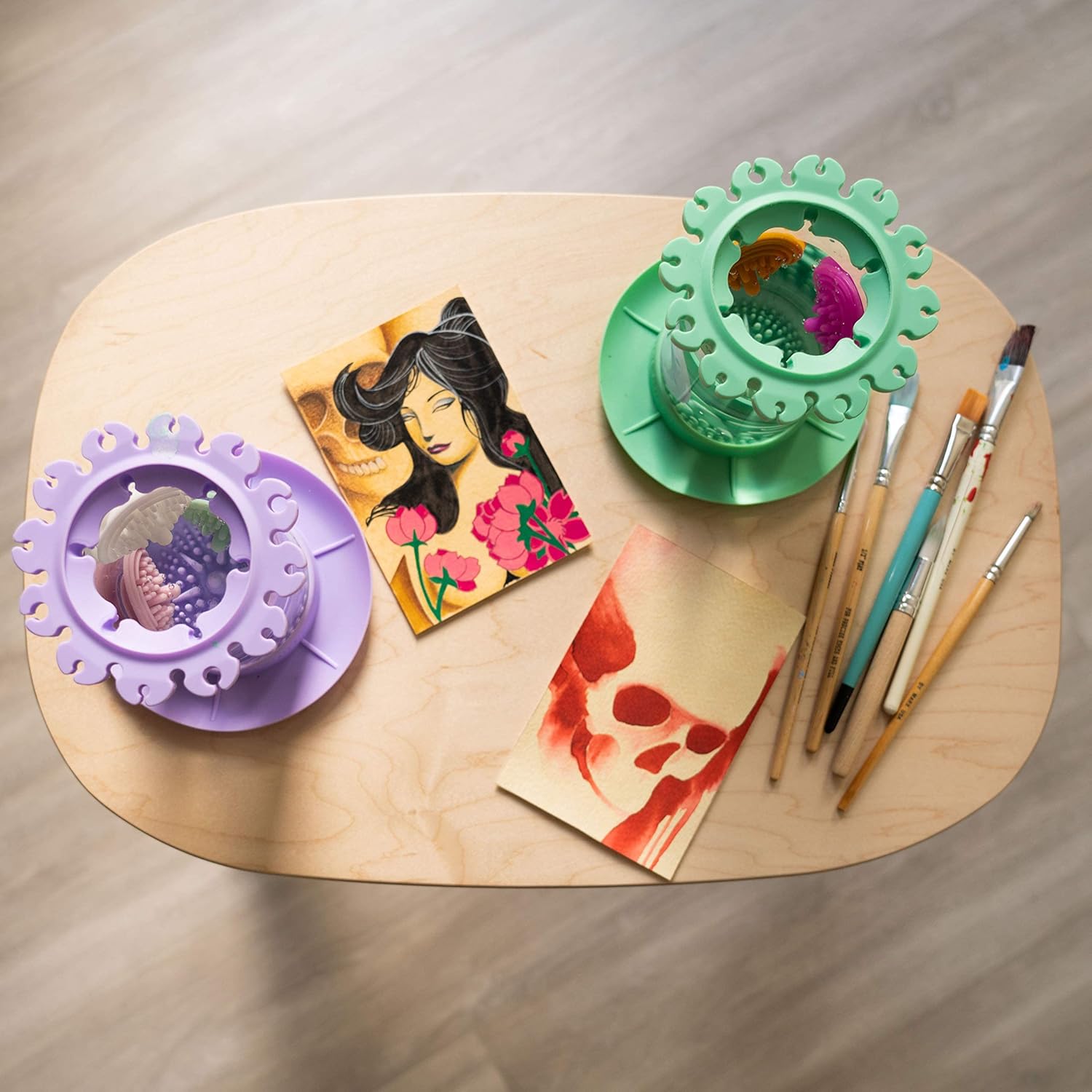 - SILICONE BRISTLE CLEANER – The bottom of each artist paint brush cleaner rinse cup is designed with silicone rubber that removes paint without damaging soft bristles.