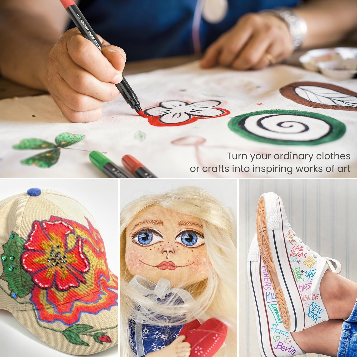 ARTEZA Fabric Markers, Set of 30, Colored Permanent Textile Markers, Dual-Tip Pens for Coloring T-Shirts, Jeans, Jackets, Backpacks