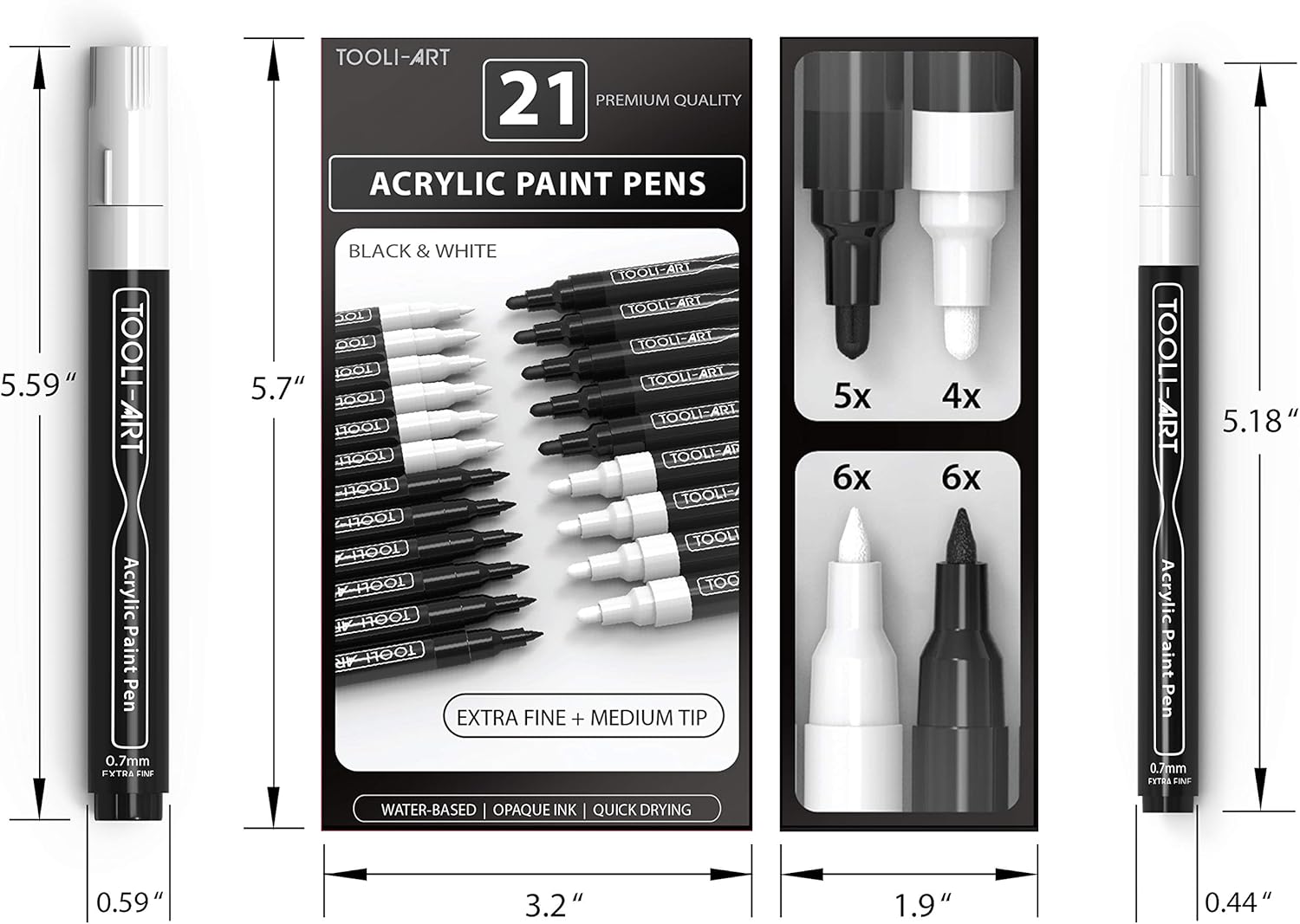 TOOLI-ART Black And White Acrylic Paint Markers Paint Pens Set For Rock Painting, Canvas, Mugs, Metal, Glass Paint, Fabric, Wood, DIY. Non Toxic, Quick Dry,Waterbas (EXTRA FINE & MEDIUM)