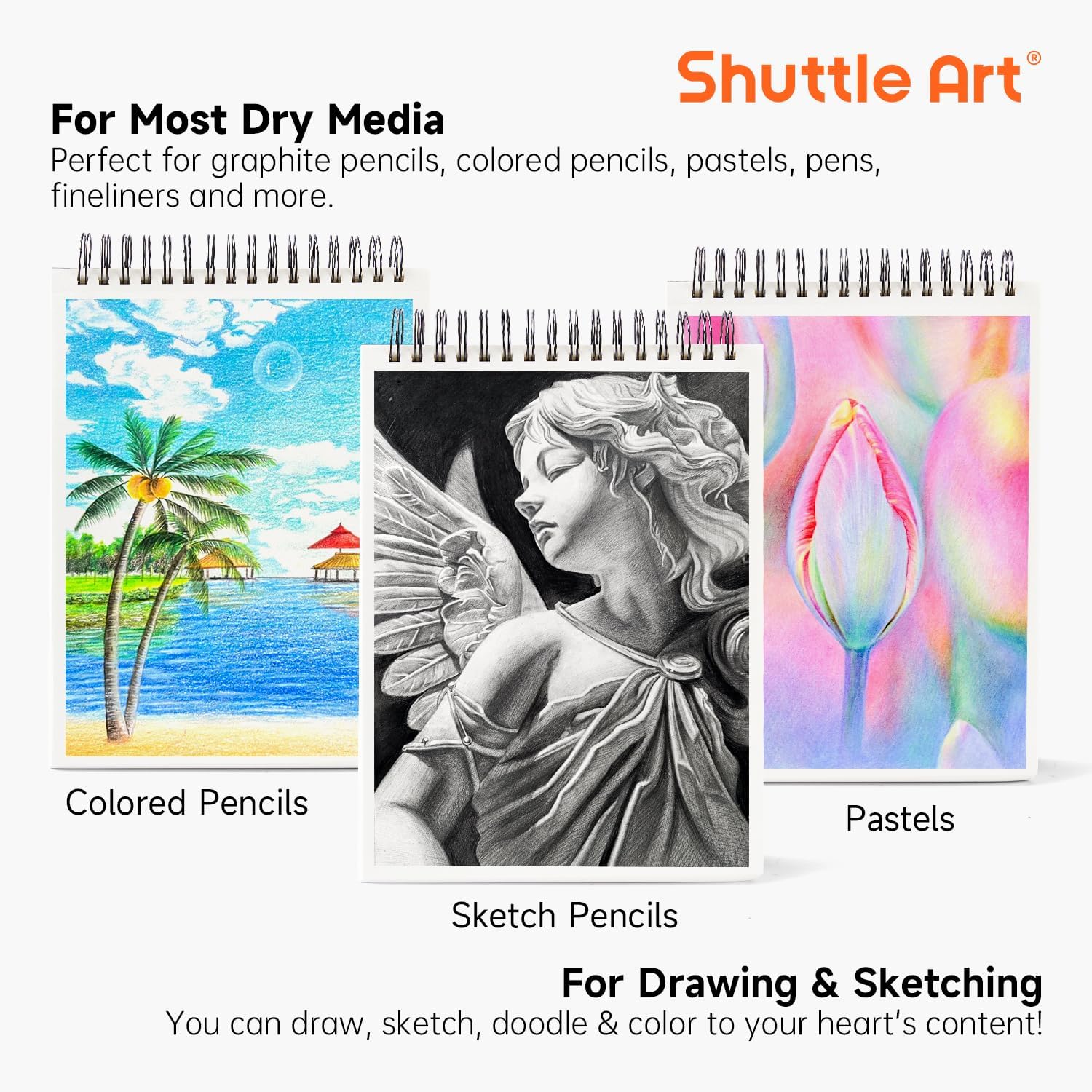 - FOR MULTIPLE DRY MEDIA: Versatile surface sketch book pad works well with dry media, including various pens, pencils, crayons, and sketching sticks. This is an ideal drawing pad for kids, adults ,students & artists
