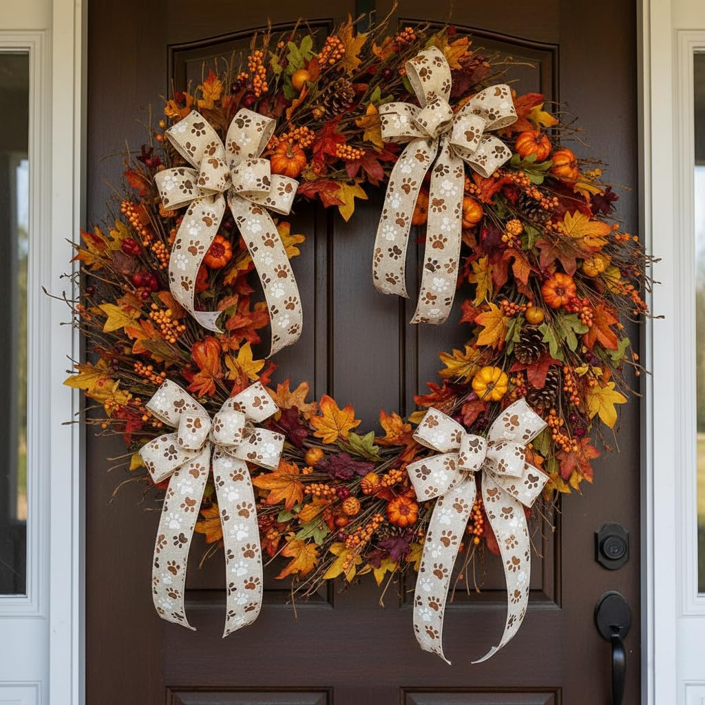 - EASY TO USE - The 10-yard long ivory canvas dog paw wird ribbon 1.5" is enough for all the decorating and accenting your DIY Crafts. The ivory canvas dog paw wird ribbon 1.5" is easy to use and won’t tangle. It can be tied or glued on gift packages and DIY craft projects such as car and chair bow, wreath, flower bouquet.