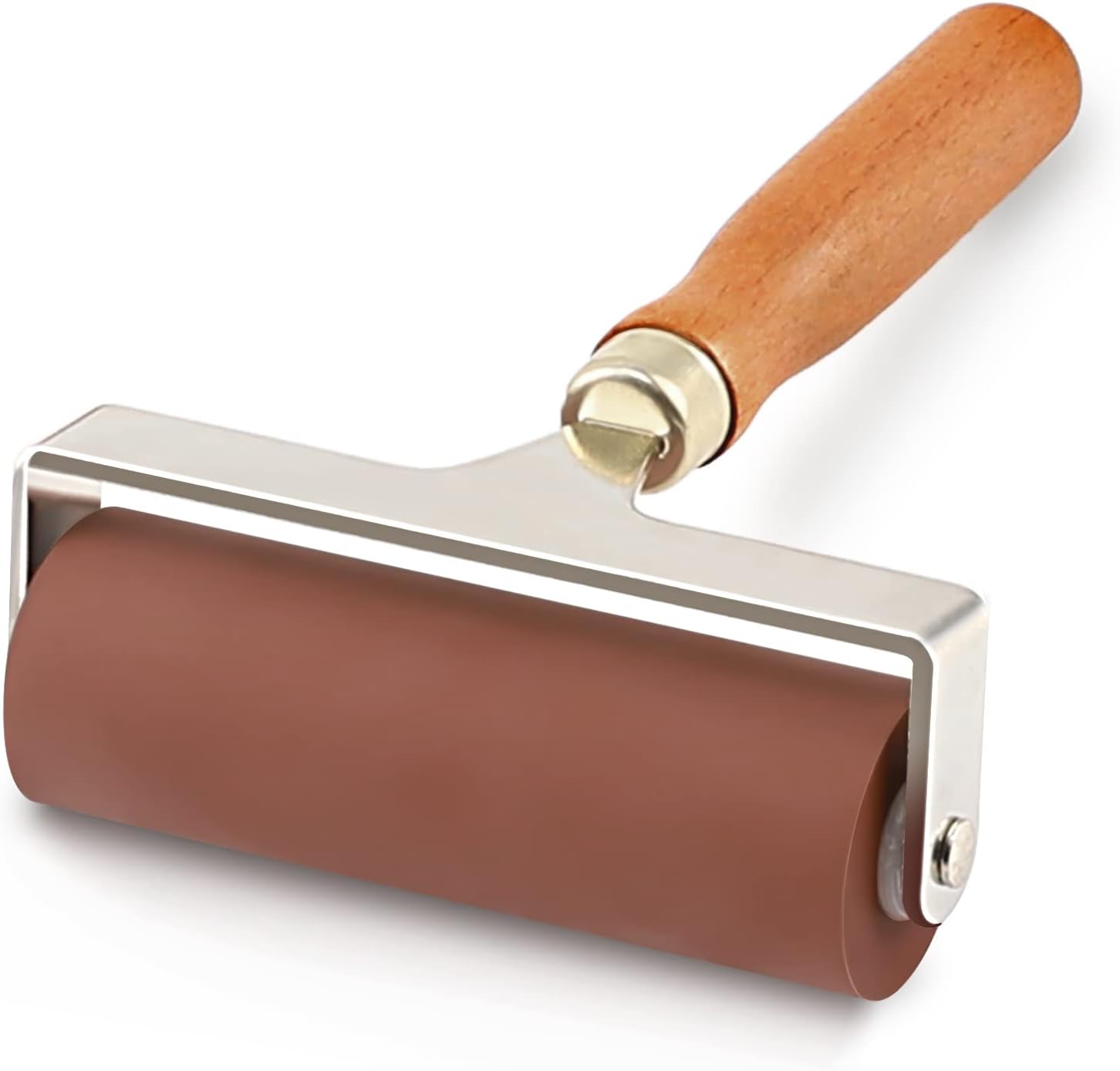 Soft Rubber Roller, Brayer Ideal for Anti Skid Tape Construction Tools, Print, Ink and Stamping Tools(4-Inch, Brown)