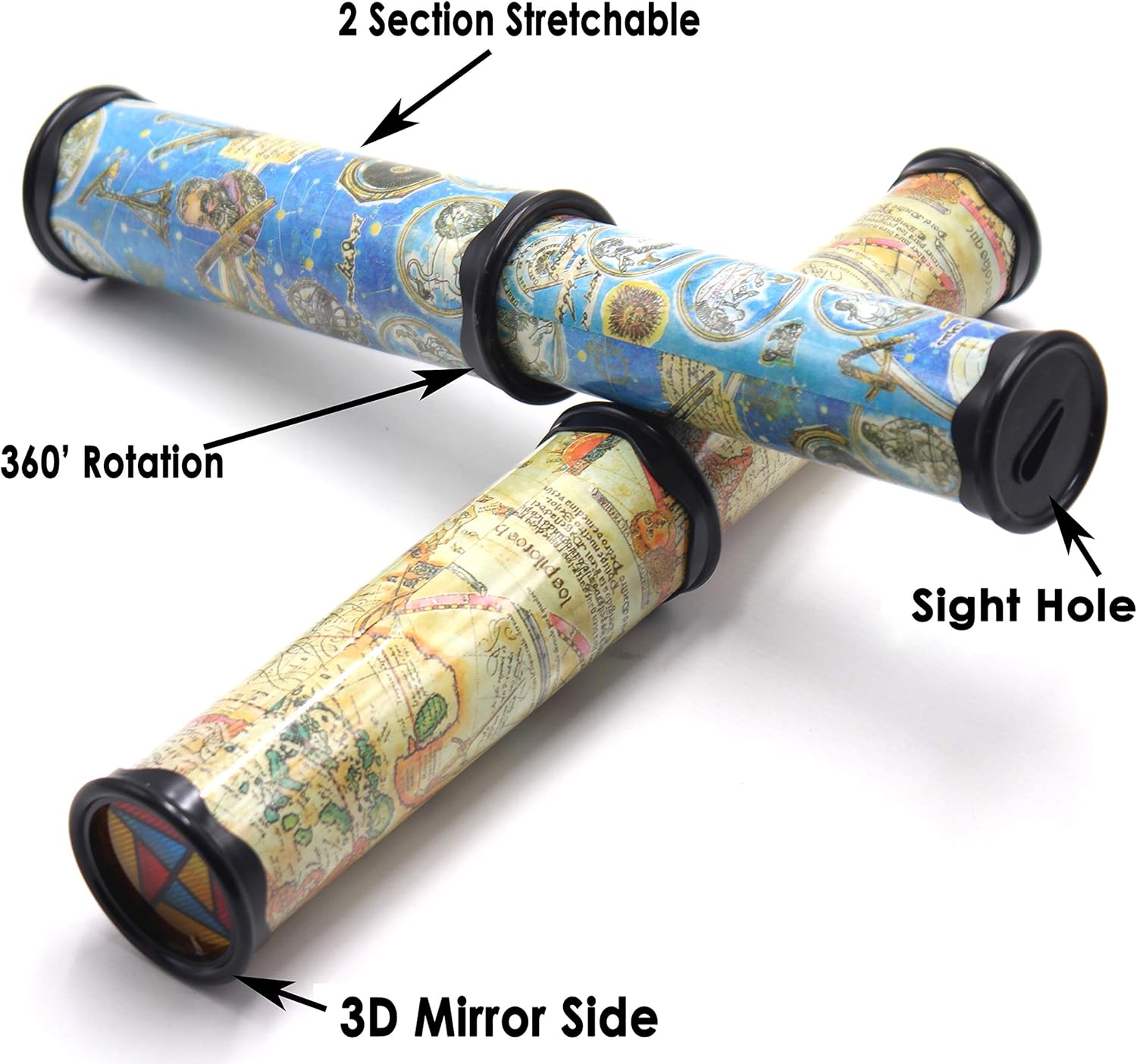 - Kaleidoscope has stretchable function, it can be used as short easy carry one, or as long funny one