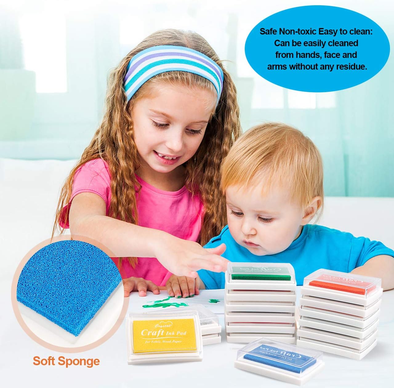 XoreArt Finger Ink Pads for Kids Washable Craft Ink Stamp Pads, 16 Color DIY for Rubber Stamps, Paper, Scrapbooking, Wood Fabric, Best Gift for Kids