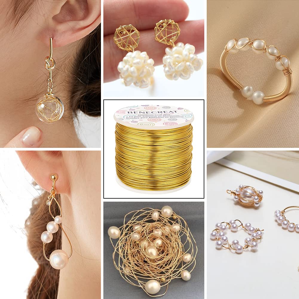 BENECREAT 9 10 12 15 17 18 20 Gauge Gold Aluminum Wire (18 Gauge,492 FT) Anodized Jewelry Craft Making Beading Floral Colored Aluminum Craft Wire for Garden, Model Making