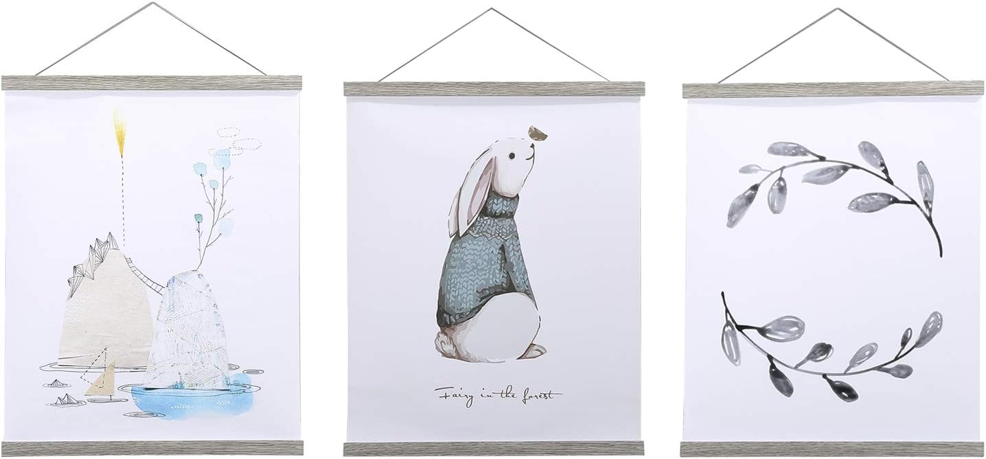 Ywlake Magnetic Poster Hanger, 9x12 9x14 9x17 Poster Frame Wood Wooden Magnet Print Posters Dowel Scroll Hanger Hangers Hanging Kit for Walls Map Canvas Artwork (Grey, 9")