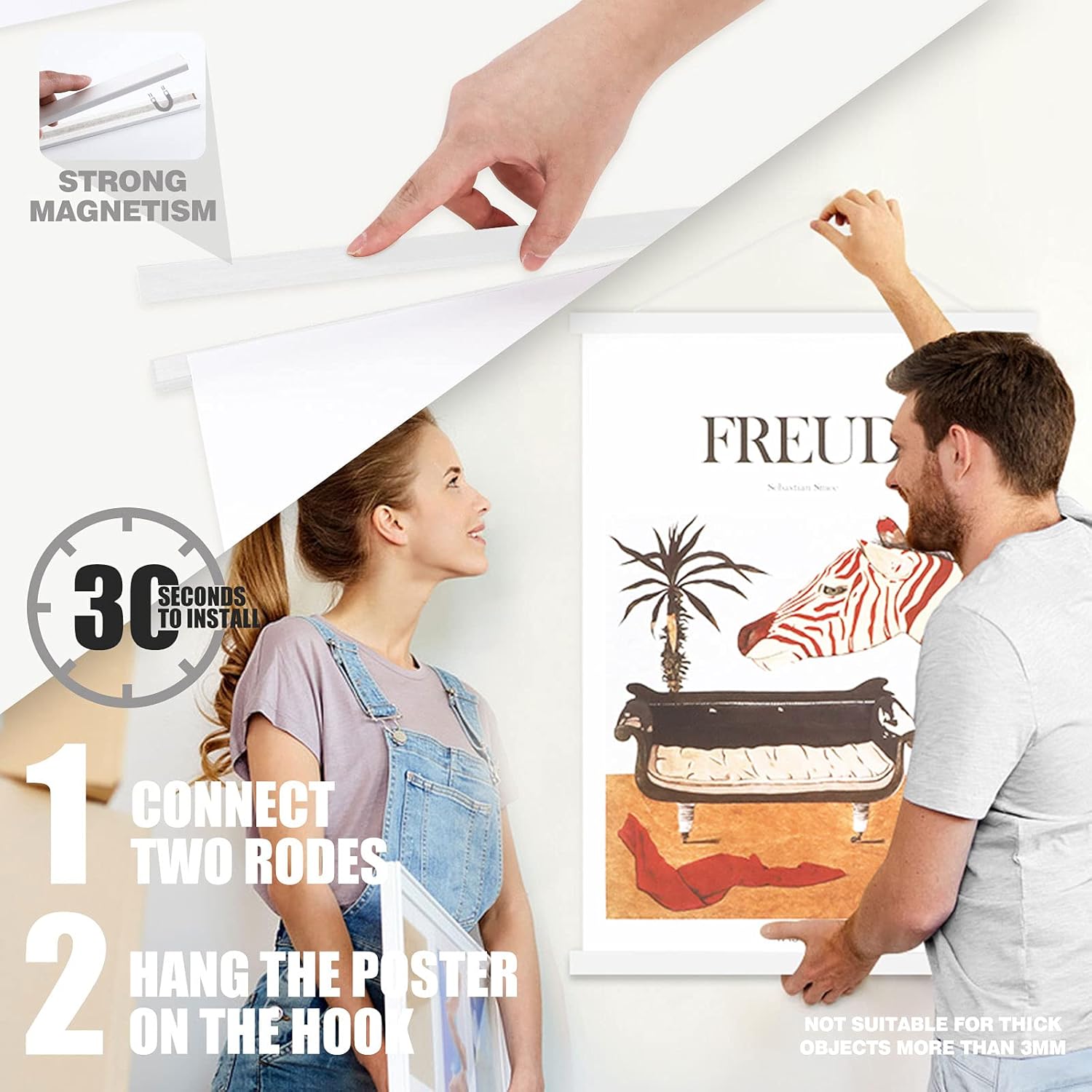 Ywlake Magnetic Poster Hanger, 12x18 12x16 12x24 Poster Frame Wood Wooden Magnet Print Posters Dowel Scroll Hanger Hangers Hanging Kit for Walls Map Canvas Artwork (White, 12")