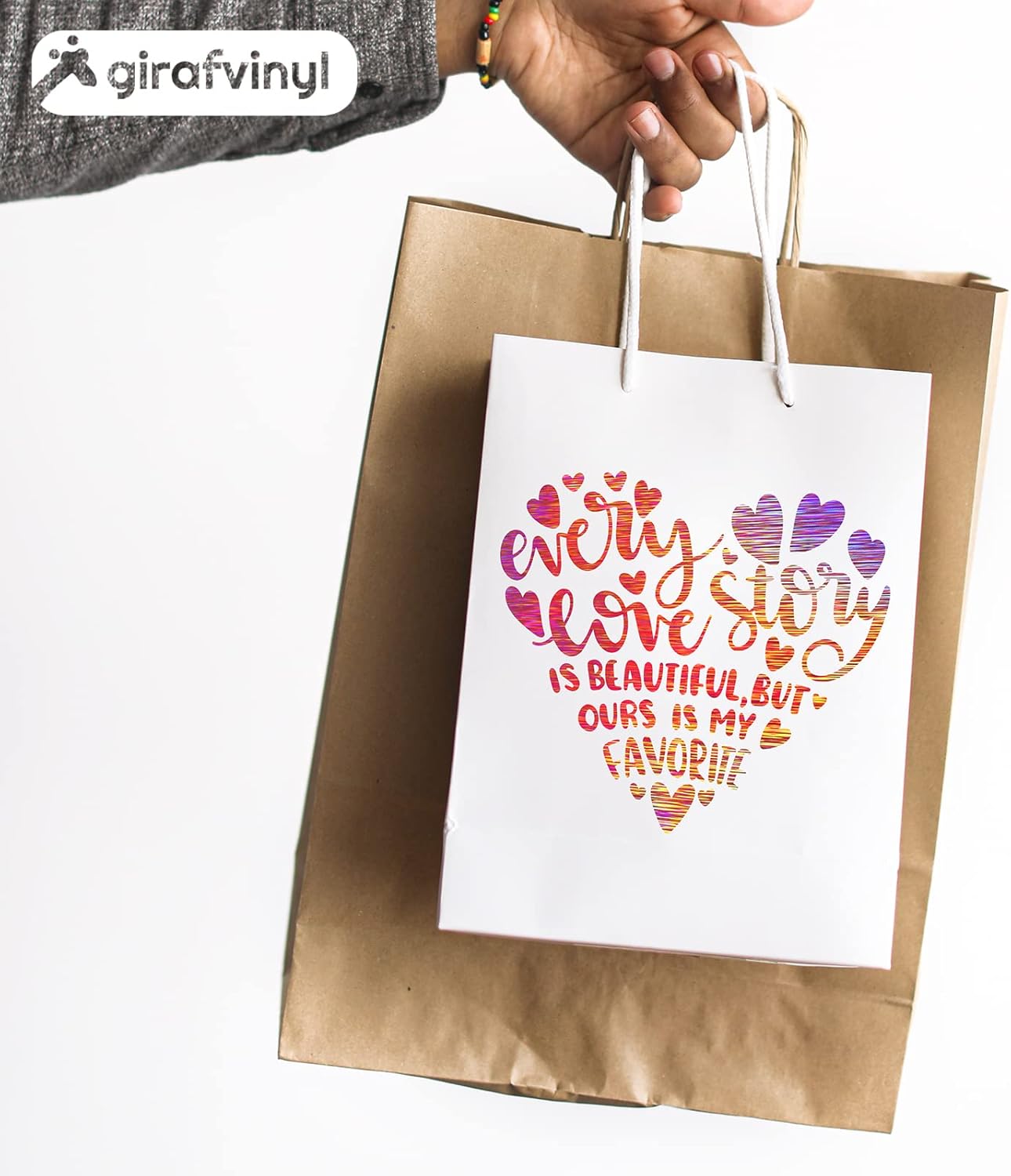 GIRAFVINYL Rose Gold Holographic Vinyl Permanent, Rose Gold Permanent Vinyl 6 Sheets Pink Adhesive Viny1 for DIY Cup, Home, Car Christmas Decorations, 12" x 12"