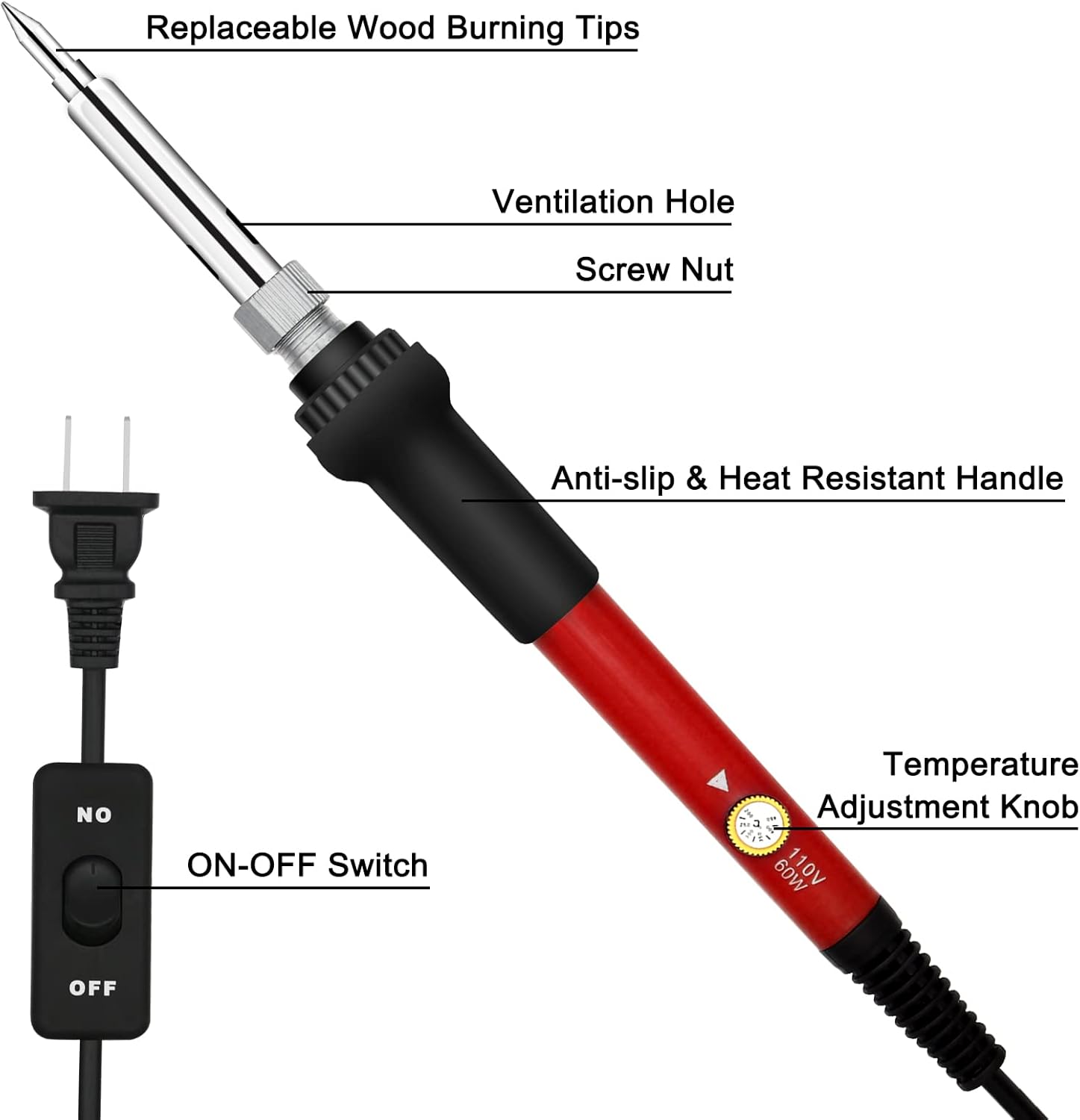 - MULTIFUNCTIONAL USE: The premium wood burning kit with multiple interchangeable tips and accessories can be used easily for all skill levels, suitable for most universal craft, hobby, or home DIY project