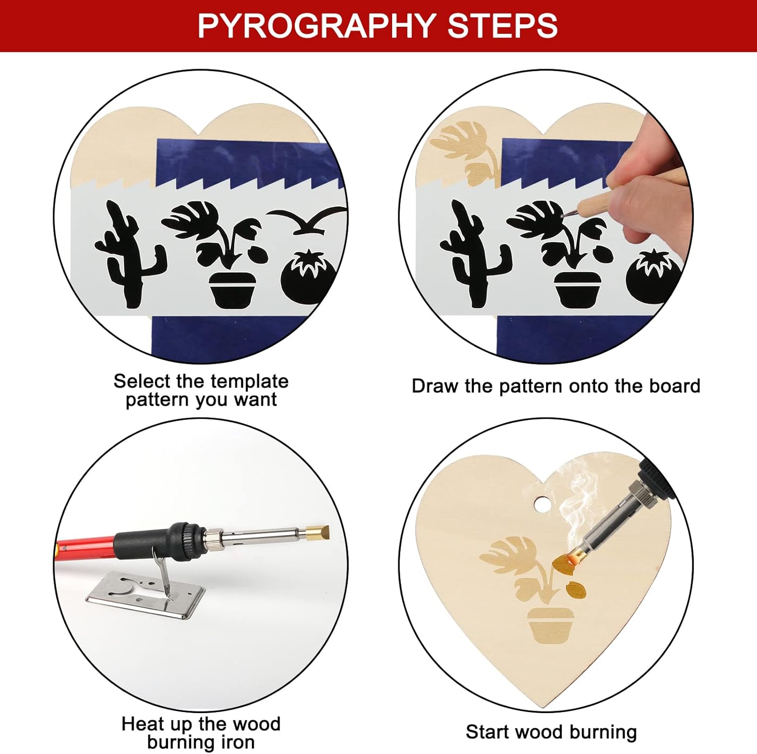 - YOU WILL GOT: This set comes with 73PCS accessories, including a wood burning pen, different types wood slices, wood burning tips, embossing pen, templates, carbon paper, ropes and wood burning pen holder