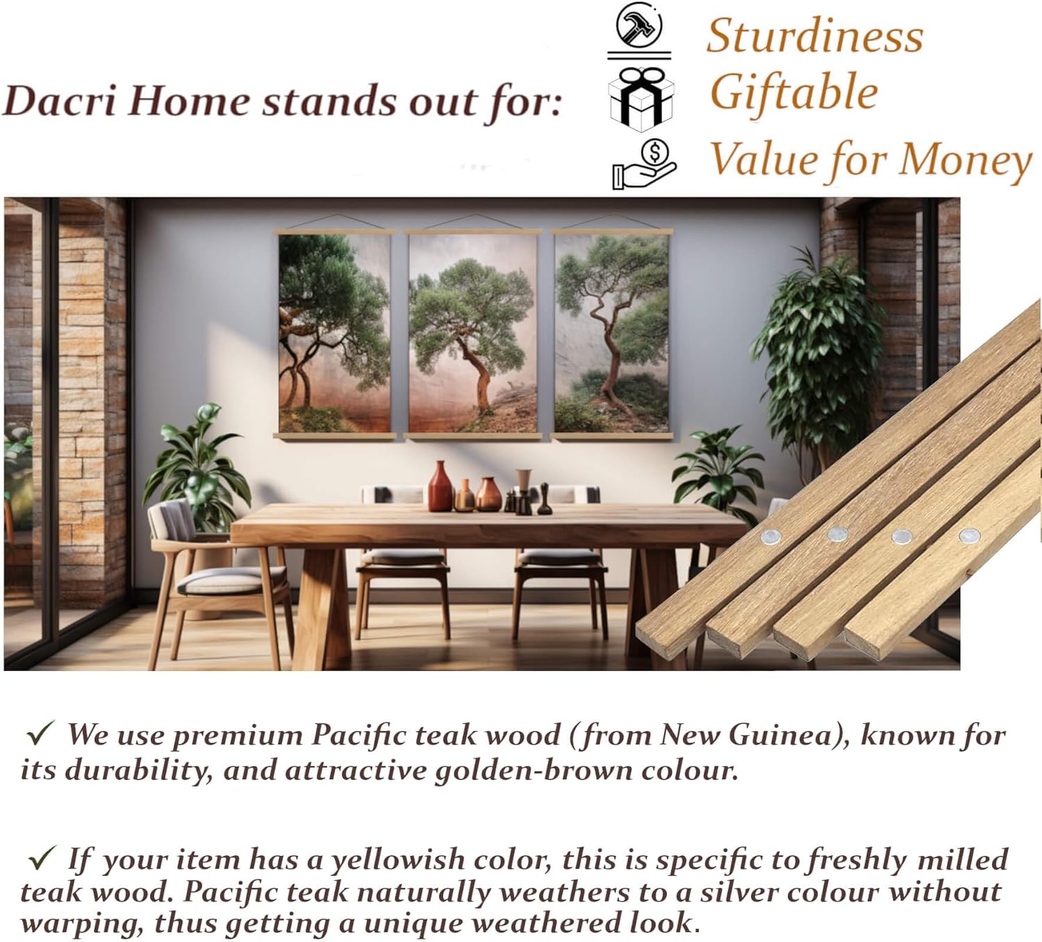 36" Sturdy Magnetic Poster Hanger,Sleek Poster Frame of Teak Wood with Strong Magnets for Safely Hanging Maps Pictures Canvas Scrolls Print Wall Art, Dacri Home (36 Inch, Natural Wood)