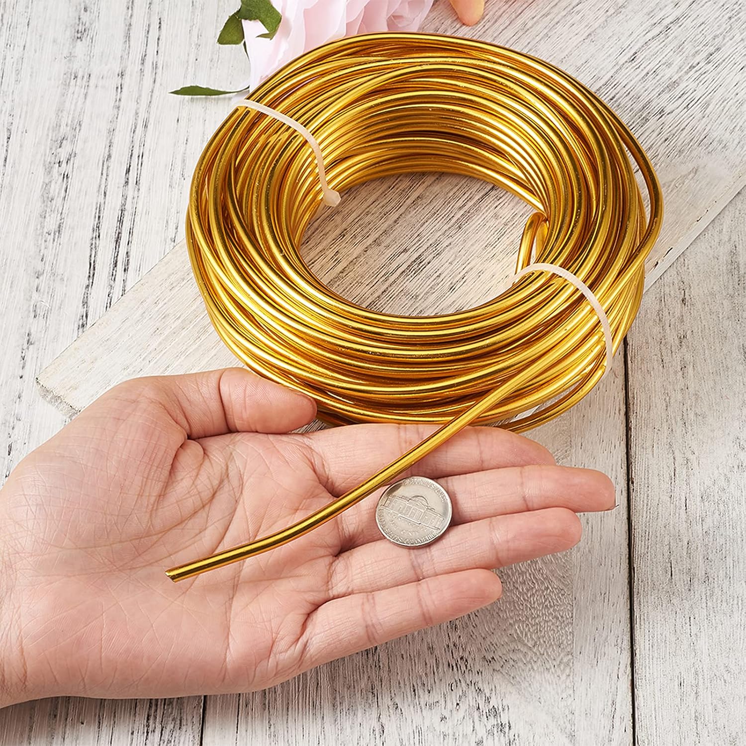 - Package includes-- 1 roll x 52 ft golden aluminum wire (about 16 meters, 17 yards), 4mm thickness (6 gauge).