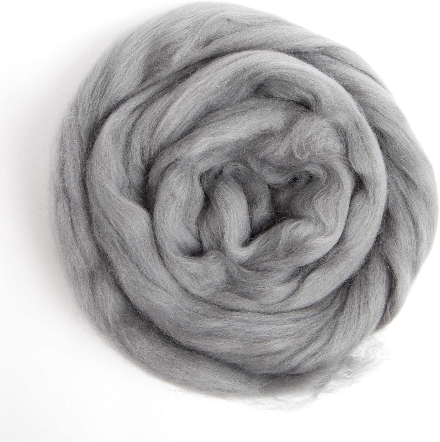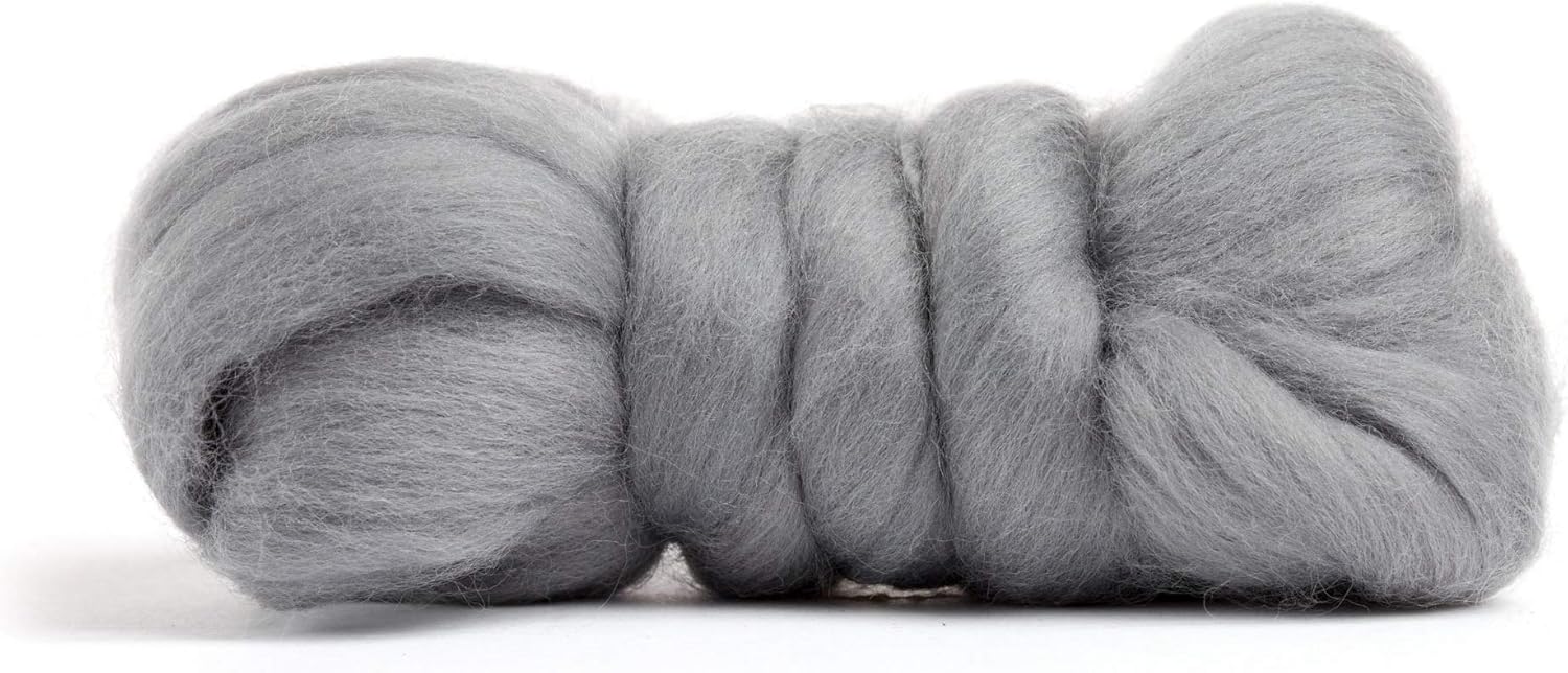 Desert Breeze Distributing 100% Natural Merino Wool Roving - Premium Combed Top Merino Roving Wool - Tapestry, Spinning, Wet Felting & Needle Felting Supplies - 21.5 Micron - 1 oz, Color Silver