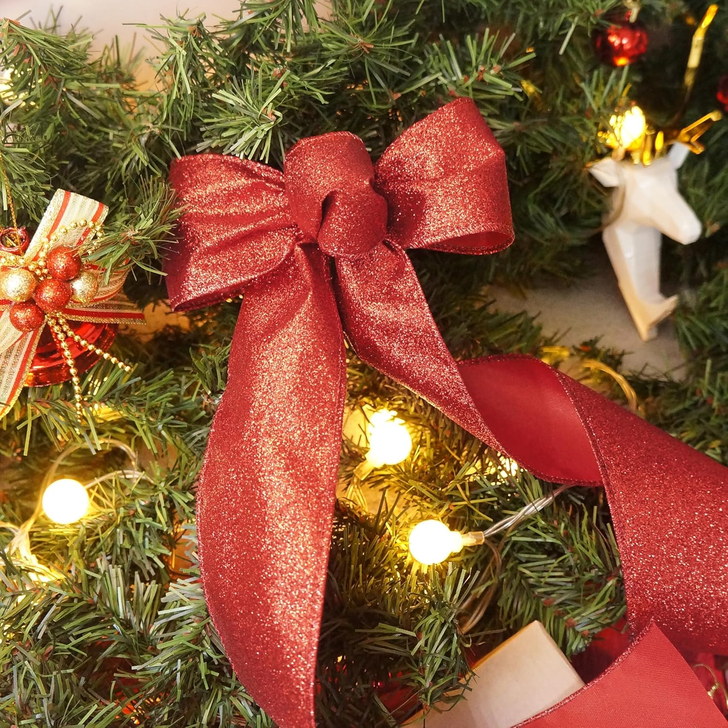- A MUST-HAVE FOR DECORATION - Don't miss it if you're choosing a Glitter Wired Ribbon 2.5" red for your decoration! Our ribbon works perfectly for decorating and adding finishing touch to your craft projects. Simple and elegant.