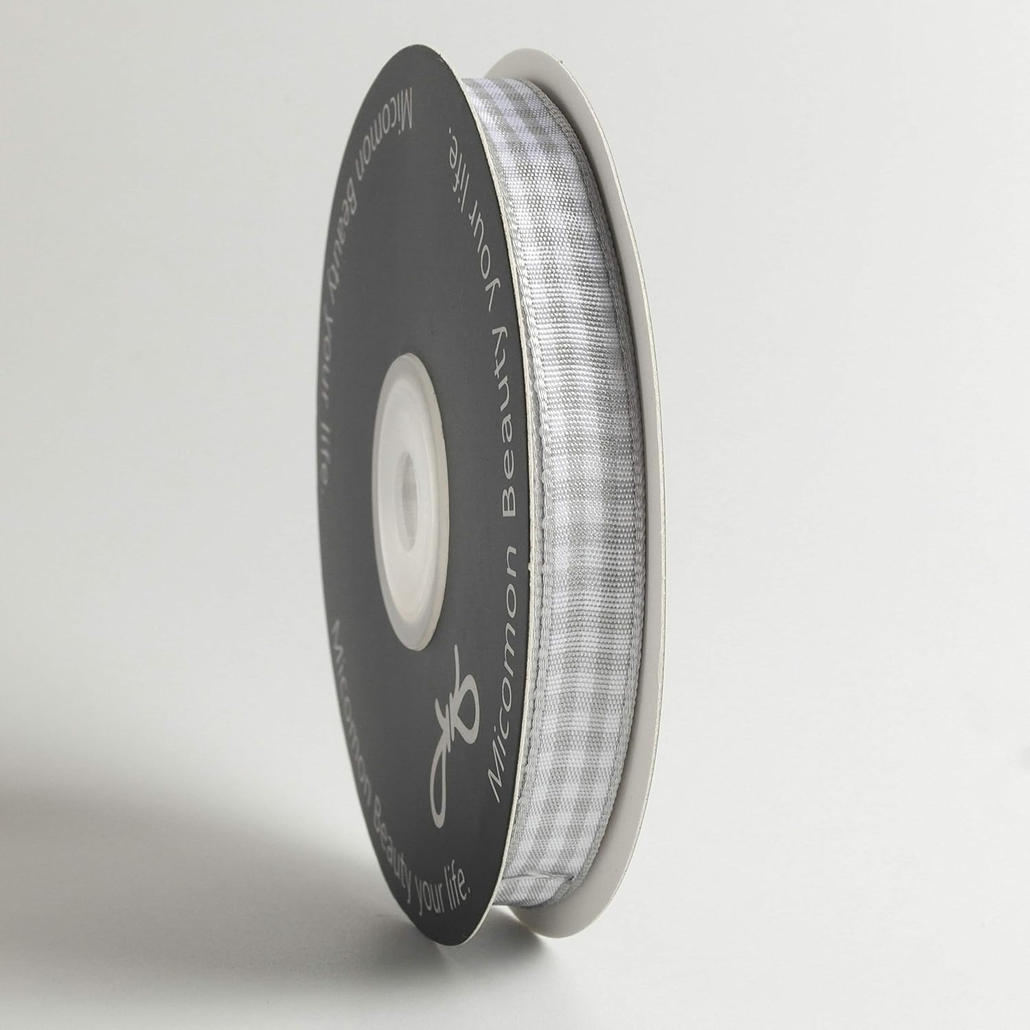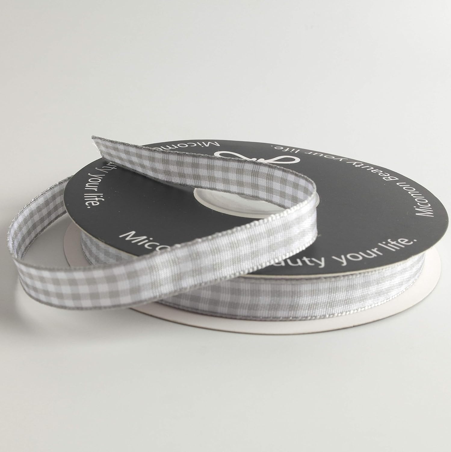 Gray Gingham Plaid Checked Ribbon 25 Yards Each Roll 100% Polyester (3/8",Gray)