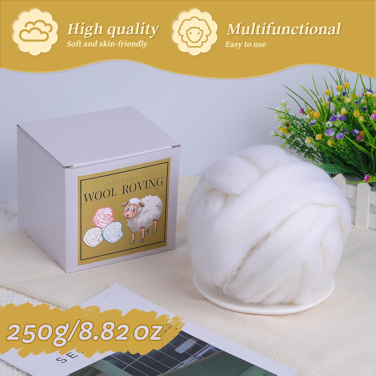 Wool Roving Bulk - 8.82oz/250g Super Wool Chunky Yarn, Wool Roving Top for Needle Felting, Soft Felting Wool Supplies for Hand Spinning, Felting, Blending, Weaving and DIY Craft