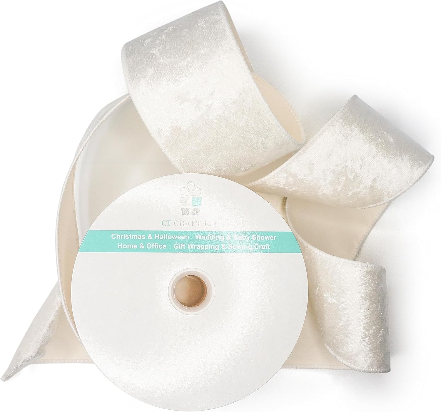 - SIMPLE YET ELEGANT - There is nothing that can accent your craft better than our Ivory Velvet Ribbon 2.5" for crafts. This ribbon matches any type of gift wrapping paper and the texture not only adds to their premium quality. You'll appreciate the ease and finesse with which these Ivory Velvet Ribbon 2.5" glide through your fingers.