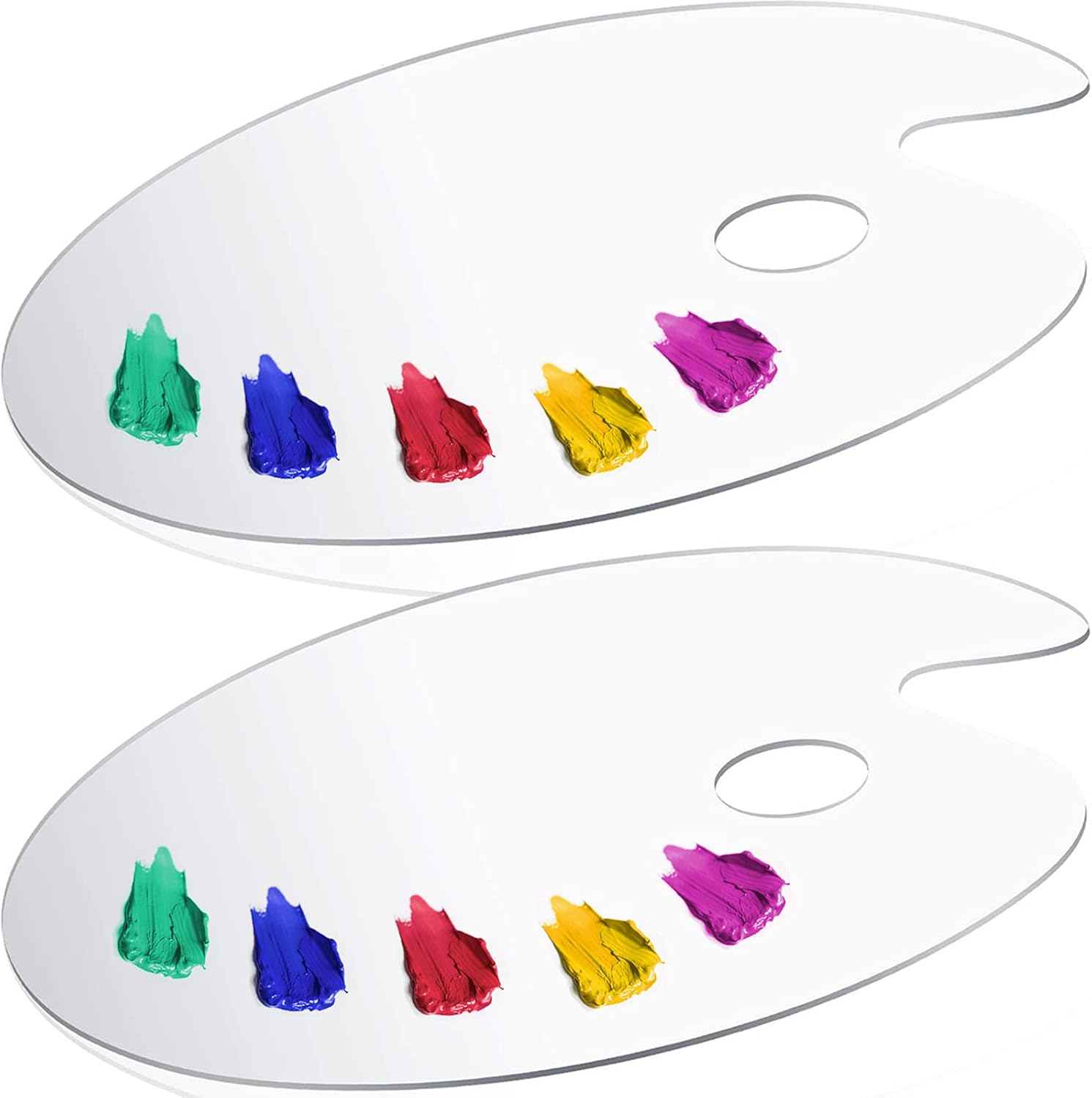 Acrylic Paint Palette 2pcs 11.8 x 7.9 inches with Thumb Hole by DUGATO, Clear Oval-Shaped Non-Stick Acrylic Oil Paint Mixing Tray- Comfortable to Hold & Easy to Clean - for DIY Art Painting Plate