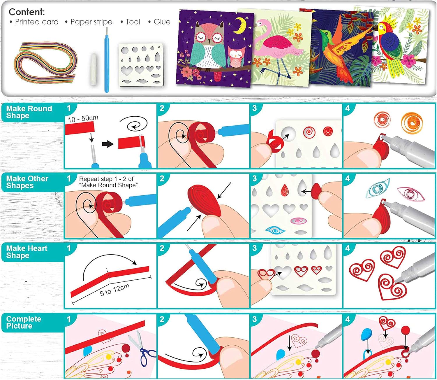 - 4 quality quilling paper sets in each box