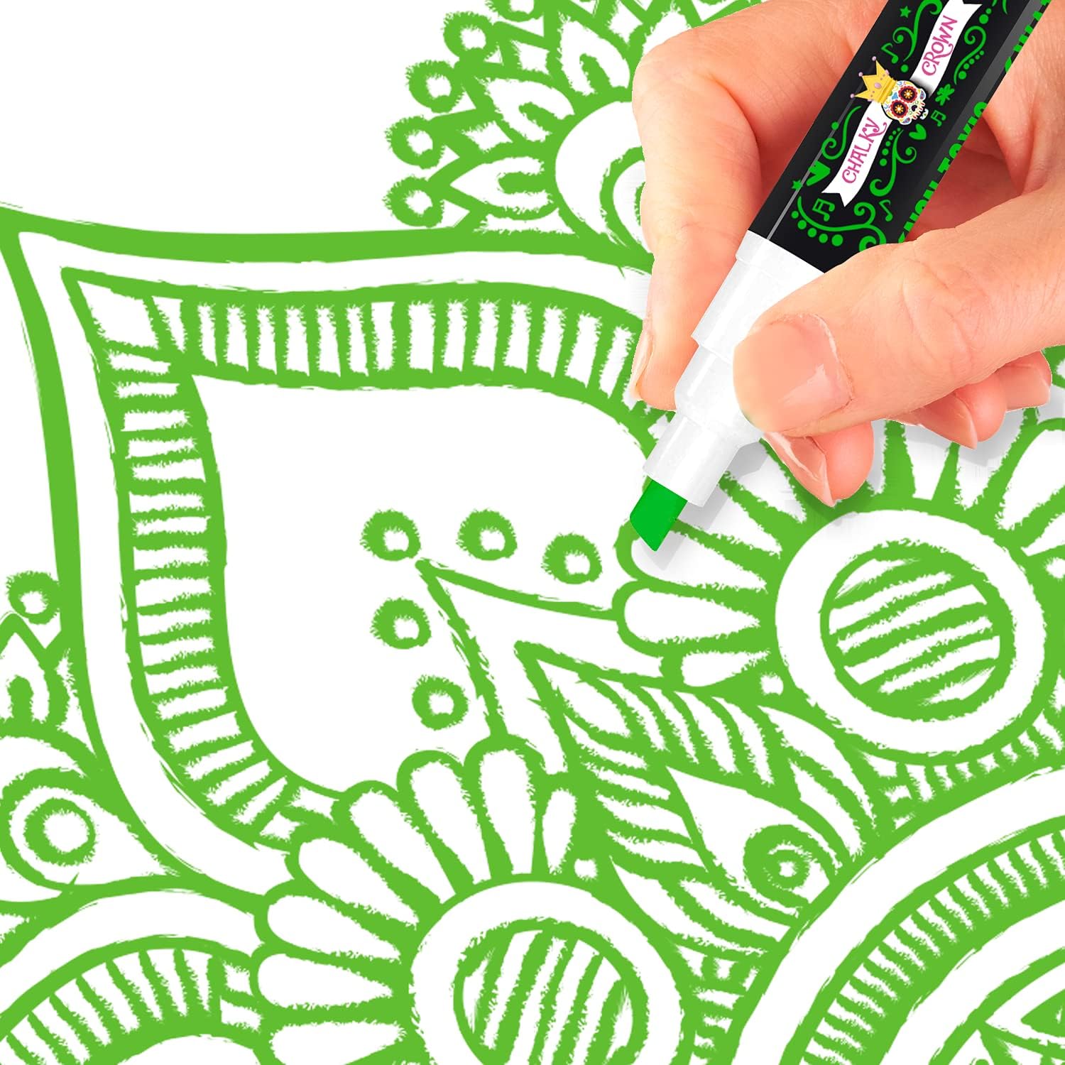 CHALKY CROWN Liquid Chalk Marker Pen - Dry Erase Marker - Chalk Markers for Chalkboard Signs, Windows, Blackboard, Glass - 6mm Reversible Tip (Green, 5 Pack)